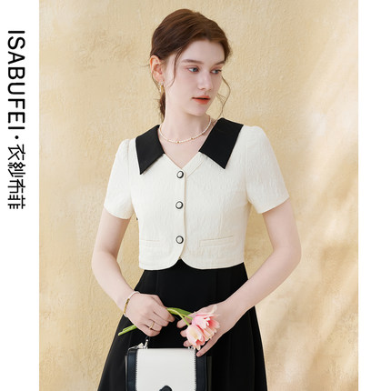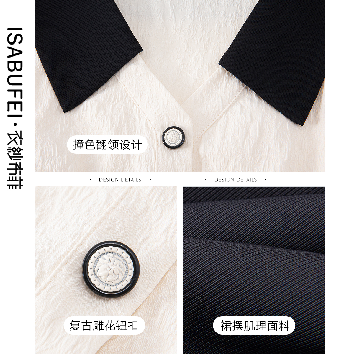 衣纱布菲春馥 撞色假两件设计修身连衣裙2025夏新款复古显瘦A字裙