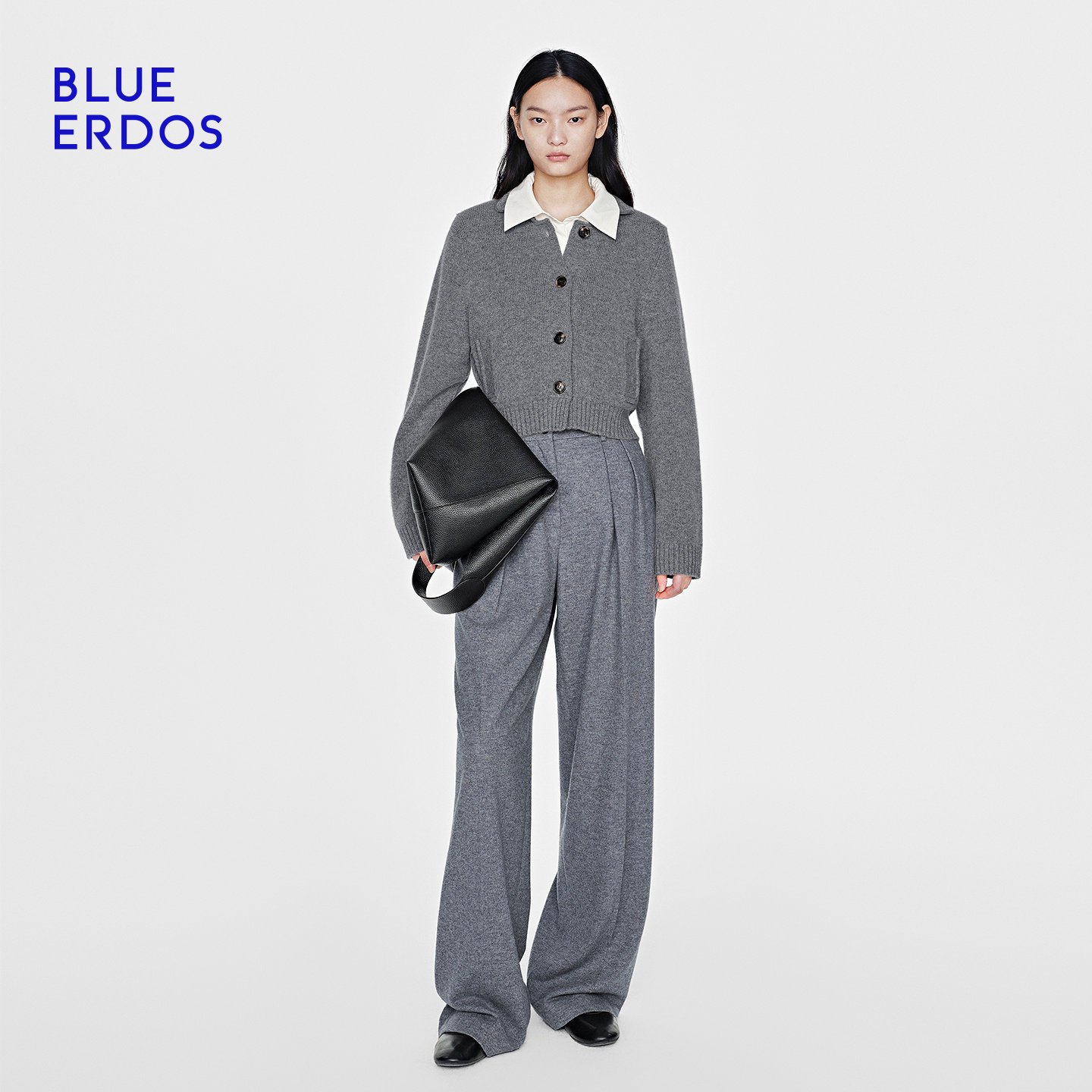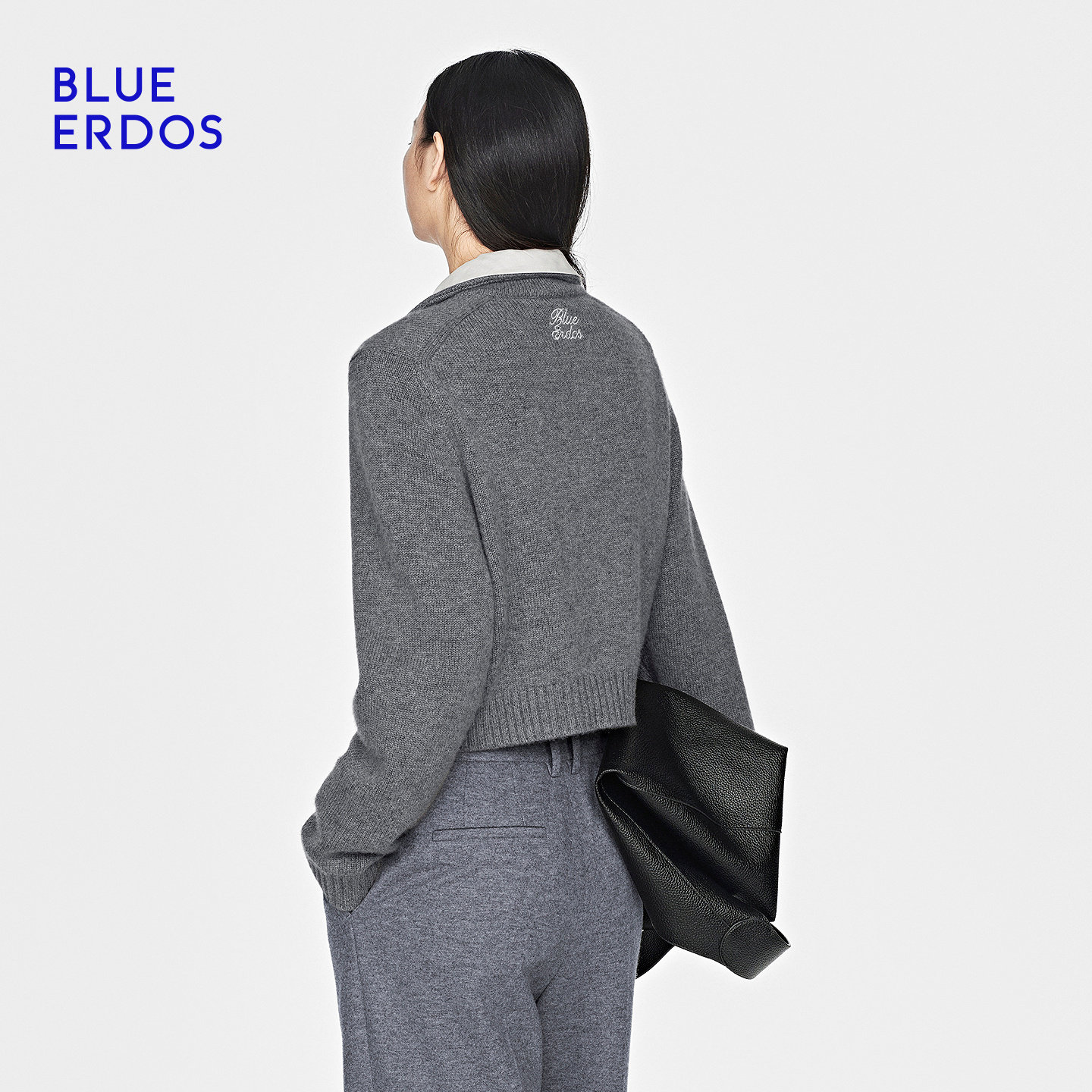 【100%山羊绒】BLUE ERDOS26早春新品松弛百搭小翻领刺绣针织开衫