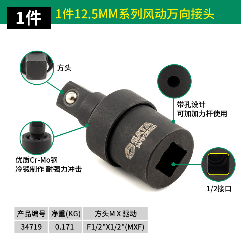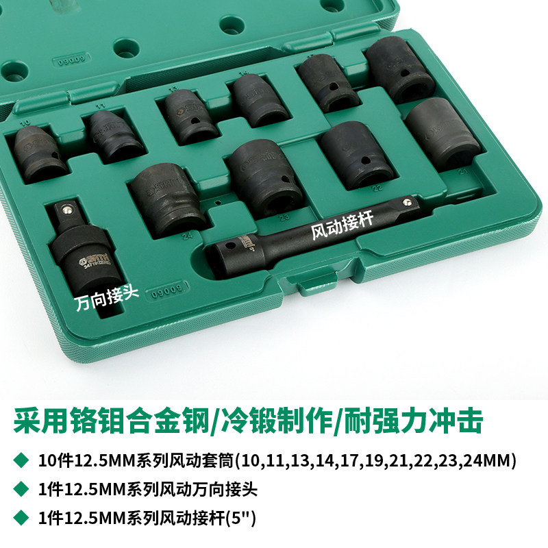 世达工具12件12.5MM系列公英制大飞1/2风动套筒汽修组套09009