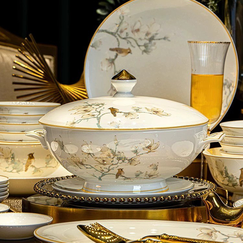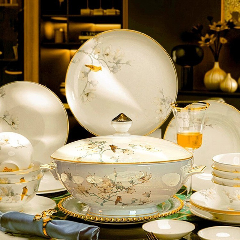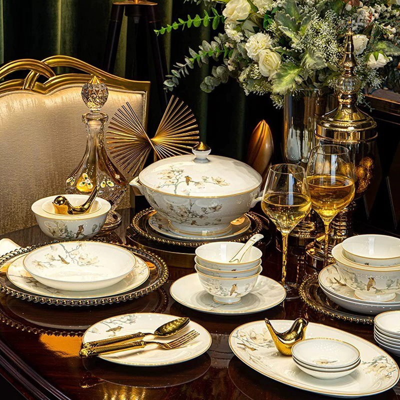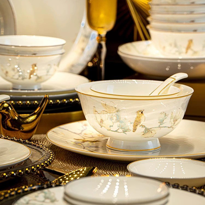 碗碟套装家用轻奢骨瓷餐具景德镇碗盘组合乔迁碗筷盘子陶瓷器礼品