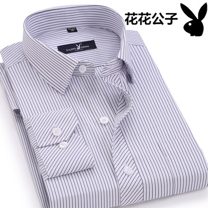 夏秋季休闲全棉条纹衬衣服宽松薄款寸衫爸爸男装中年男士长袖衬衫