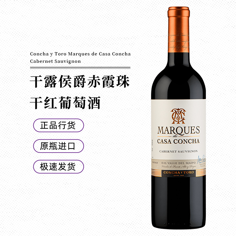 智利名庄ConchayToro干露侯爵赤霞珠干红葡萄酒原瓶进口