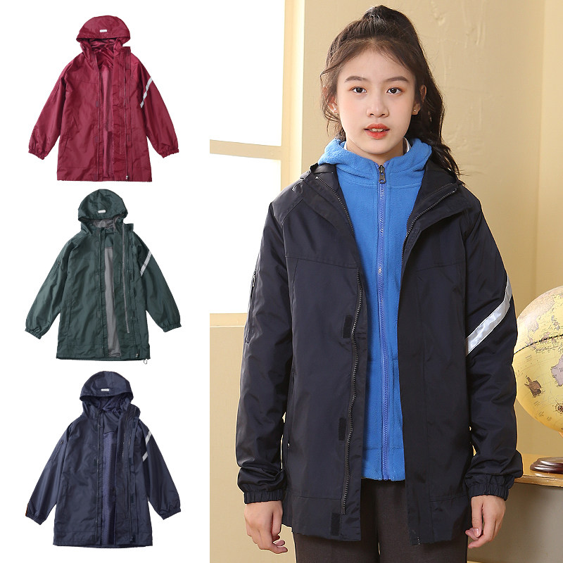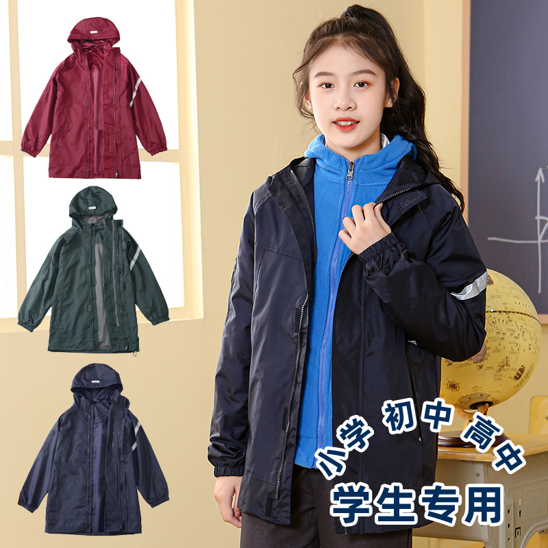 儿童冲锋衣三合一内胆春秋冬款保暖男女童校服中小学生中长款外套