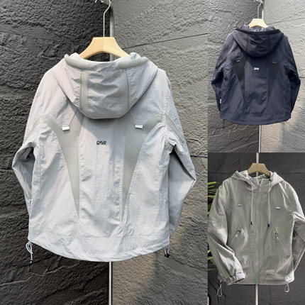 秋季纯色网眼外套运动户外百搭夹克款男士长袖连帽宽松冲锋衣青年