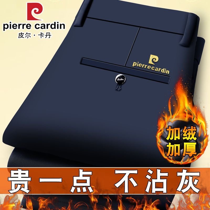 皮尔卡丹秋冬季加绒加厚男士休闲裤直筒免烫宽松防风保暖西装裤子