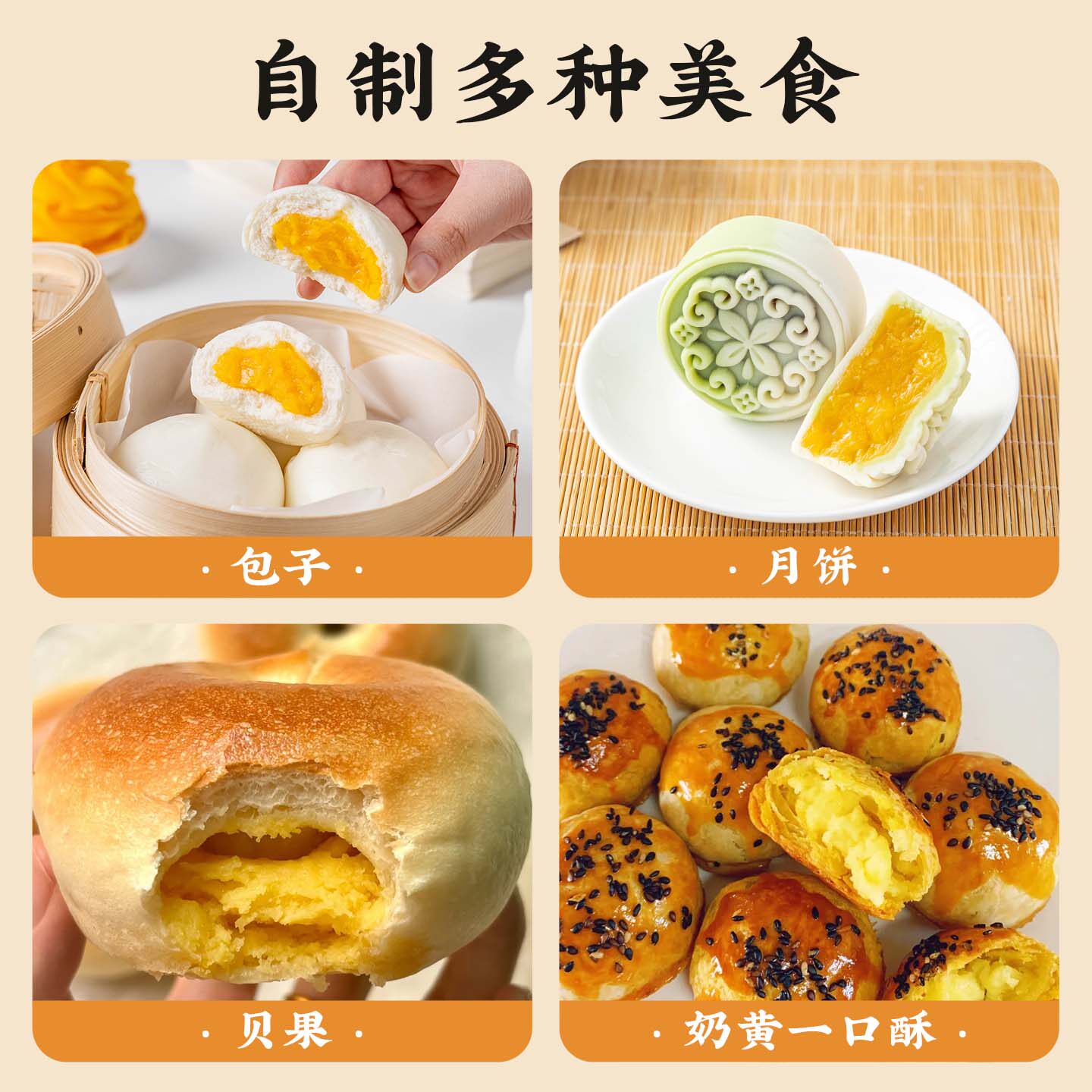 奶黄馅料包子冰皮月饼蛋黄酥原材低糖红豆沙莲蓉黑芝麻烘焙半成品