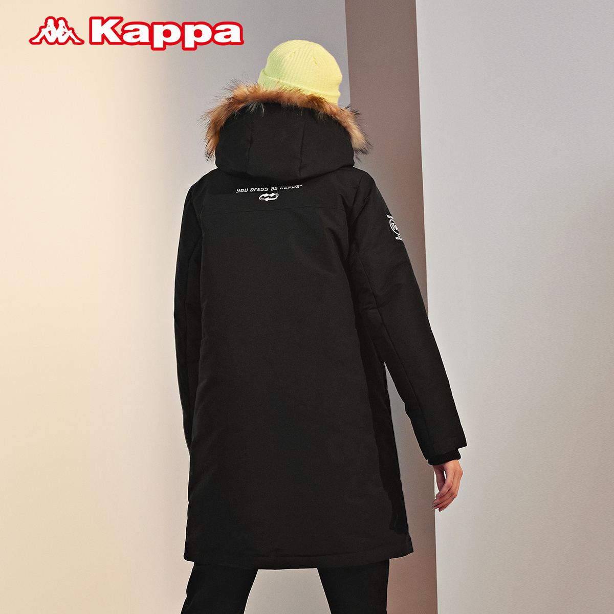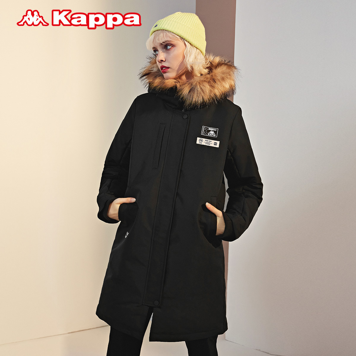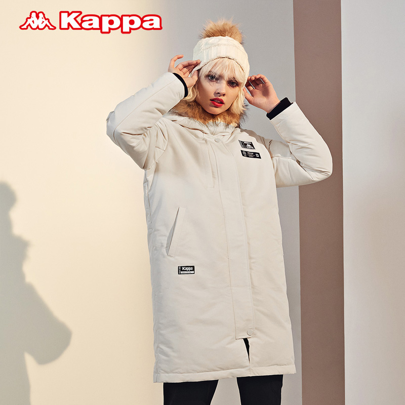 Kappa卡帕长款加厚羽绒服女毛领连帽防寒外套-K0A82YY58D
