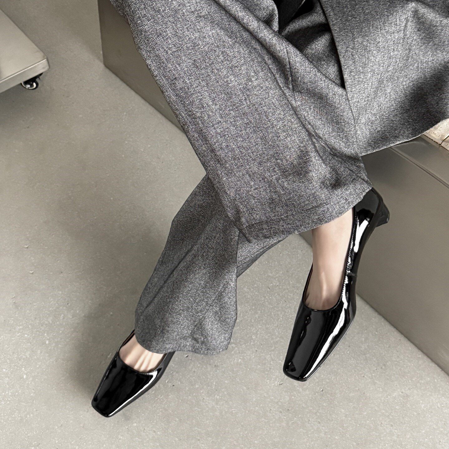 极简风~真皮法式气质方头浅口粗