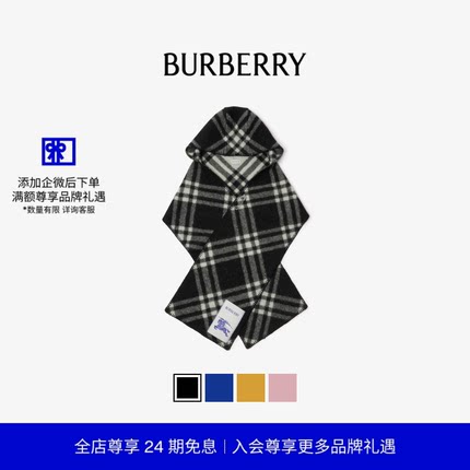 【24期免息】BURBERRY 格纹羊毛连帽围巾 多色