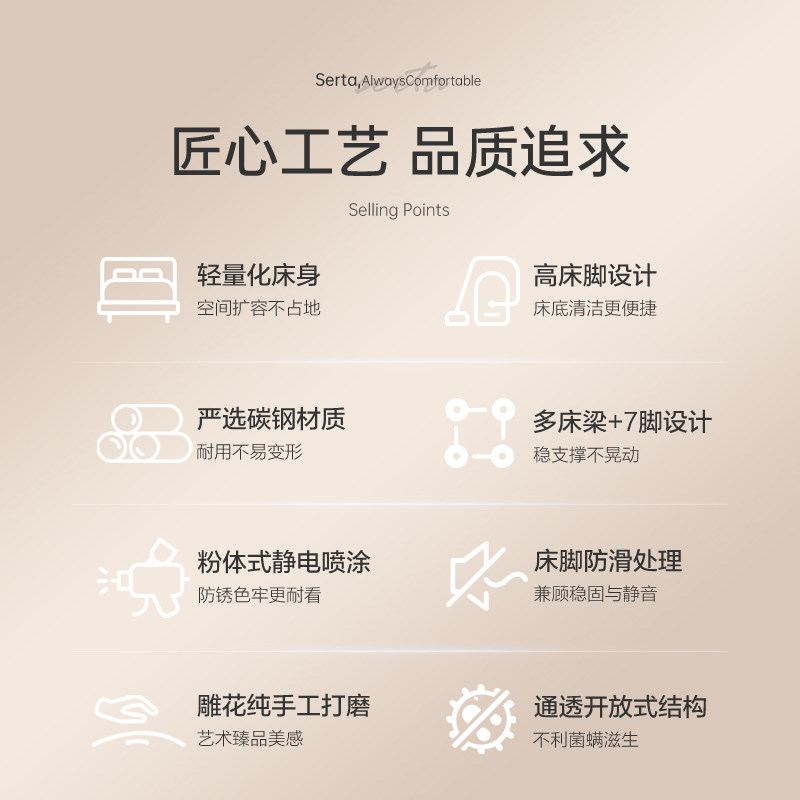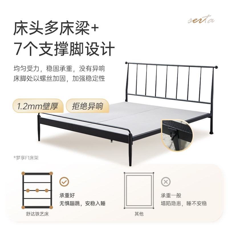 Serta/舒达 现代简约法式家用铁艺床双人床金属