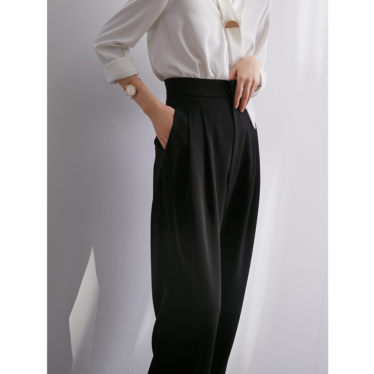 LIMONN秋季显瘦通勤气质黑色垂感阔腿裤高腰西装裤宽松直筒拖地裤
