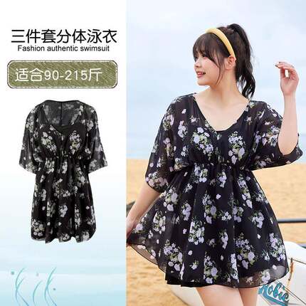 裙式大码泳衣胖mm女款分体显瘦遮肚子遮肉游泳装三件套胖妹1005c
