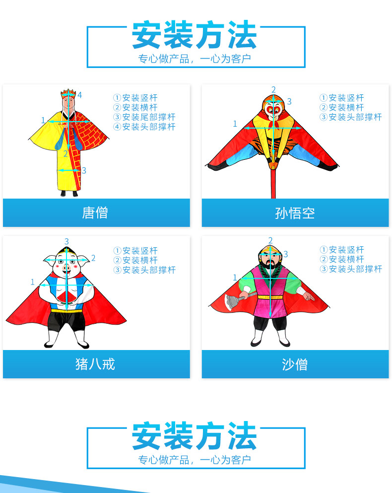 正宗潍坊风筝百特新款西游记系列大圣悟空唐僧猪八戒风筝线轮易飞