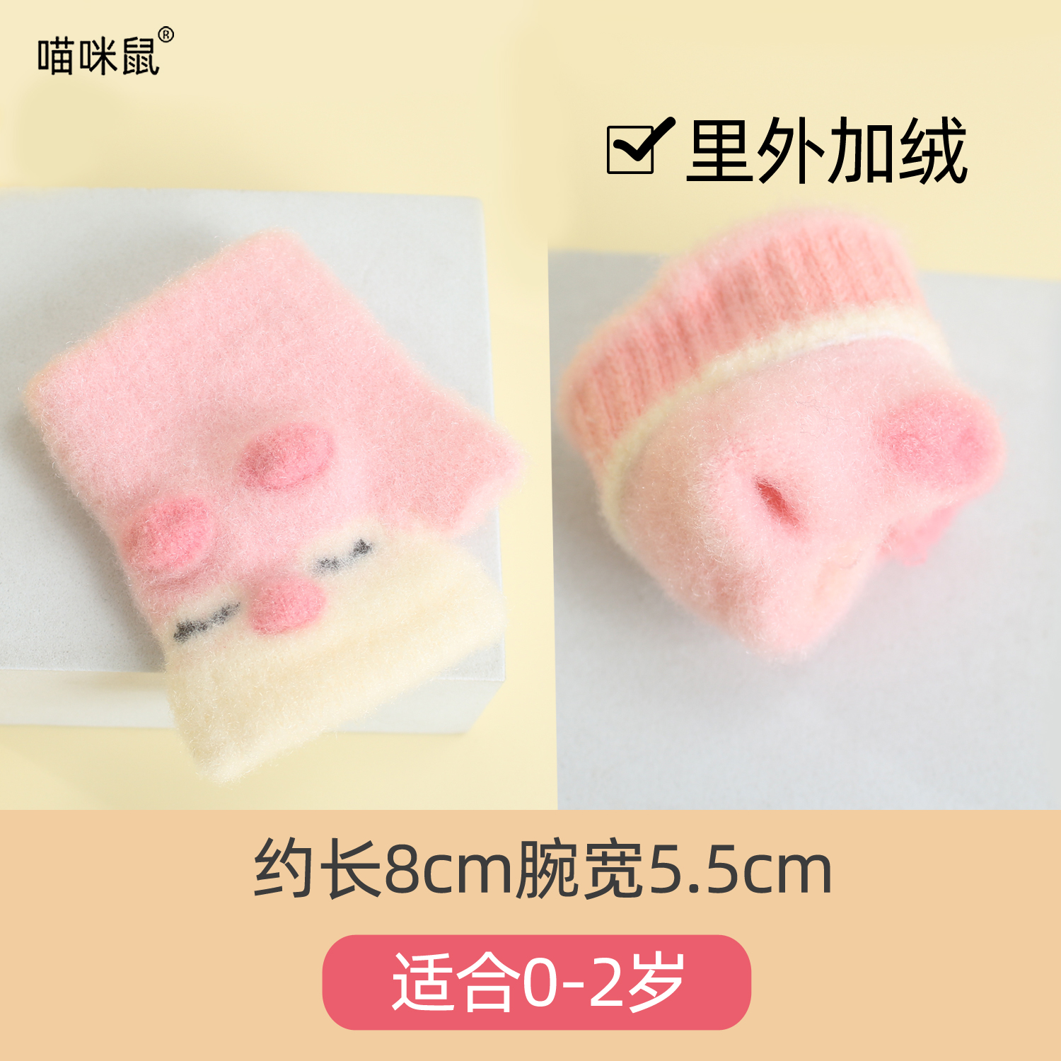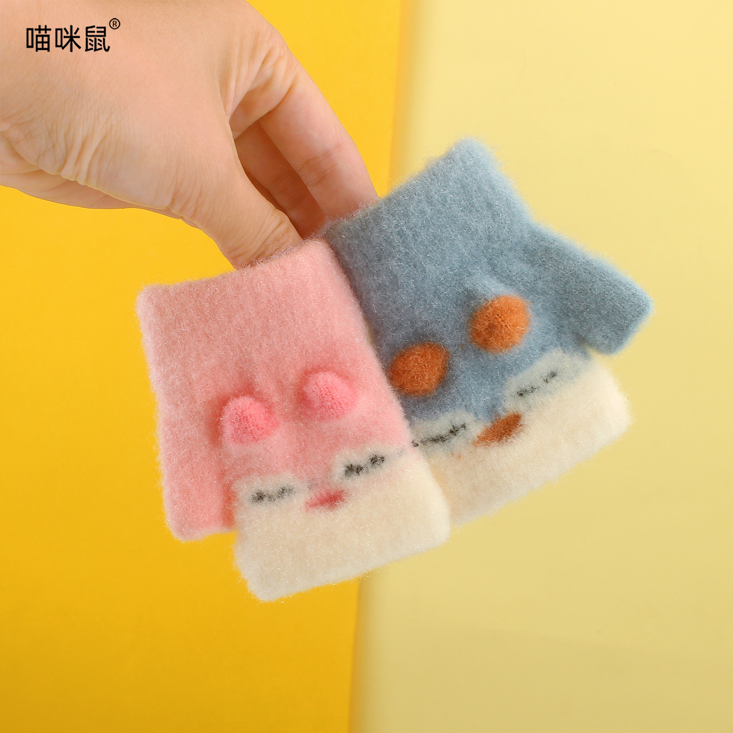 婴儿手套秋冬季保暖半指露指爬行不分指男女宝宝0-2岁可爱萌连指