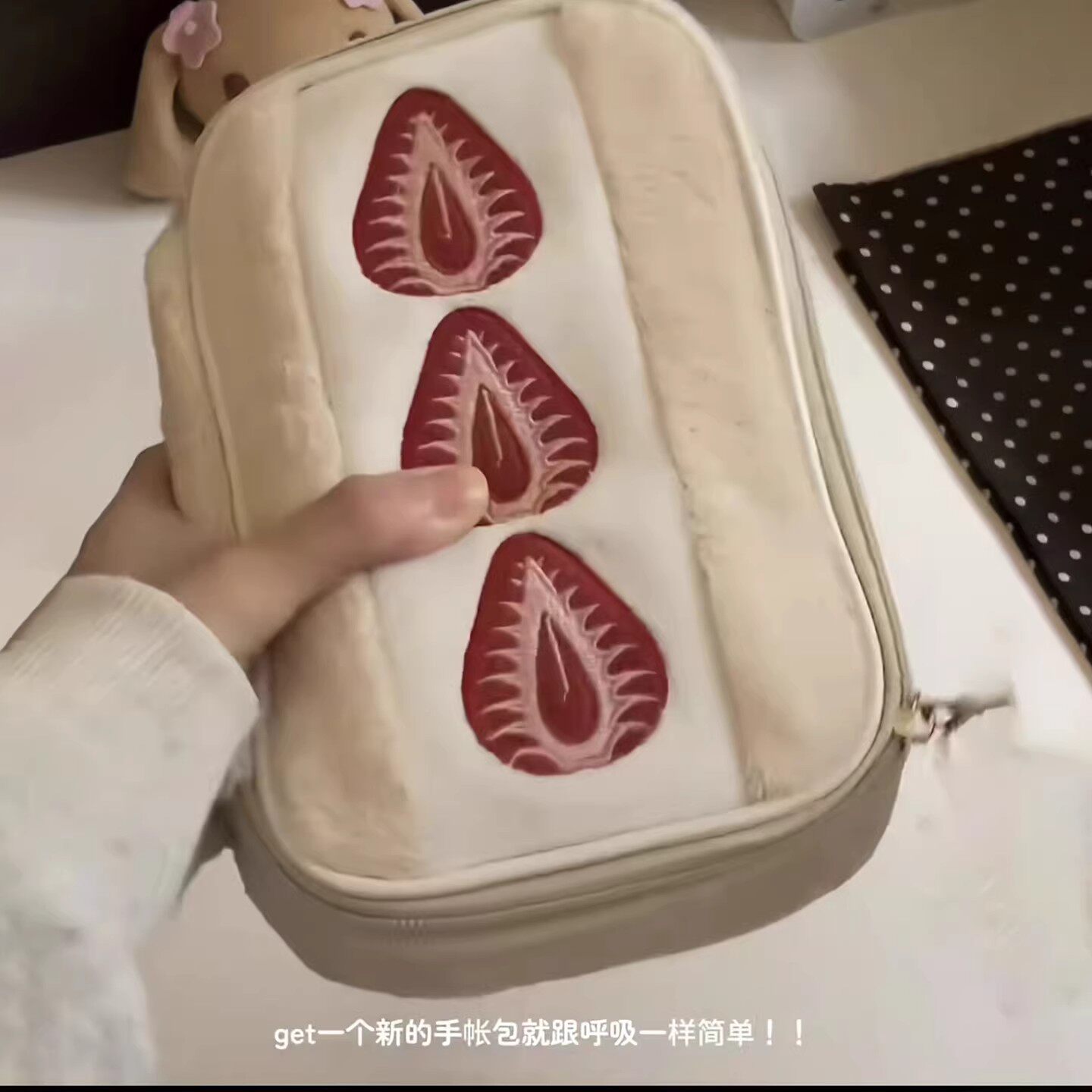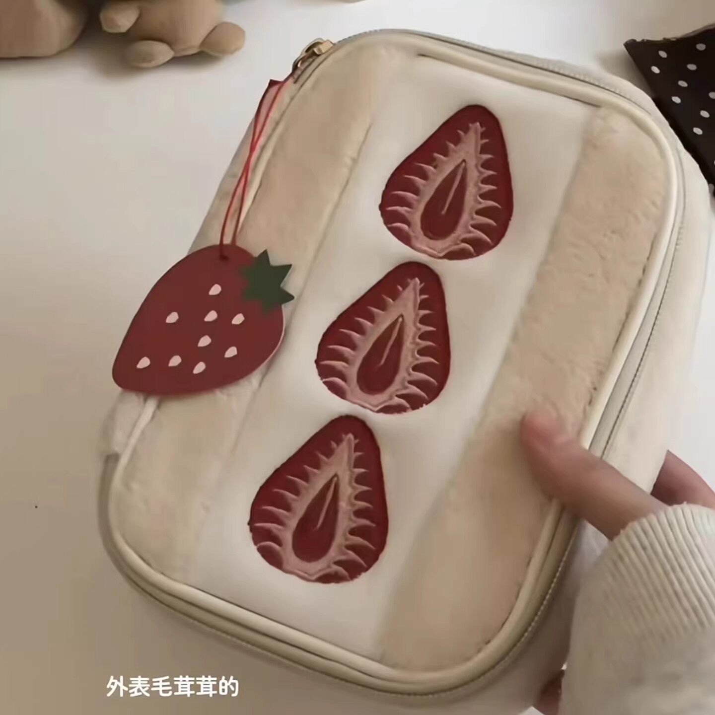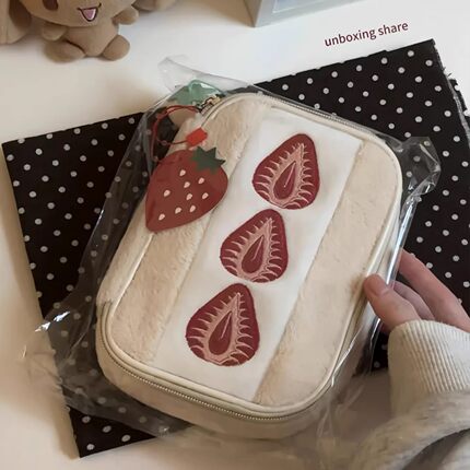 李沅禧同款!草莓三明治化妆包女外出便携式大容量收纳包软萌毛绒