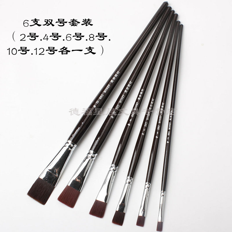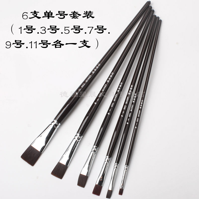 莫奈水粉笔水彩画笔尼龙毛画笔平头颜料画笔长杆丙烯油画笔单支学生美术专用笔