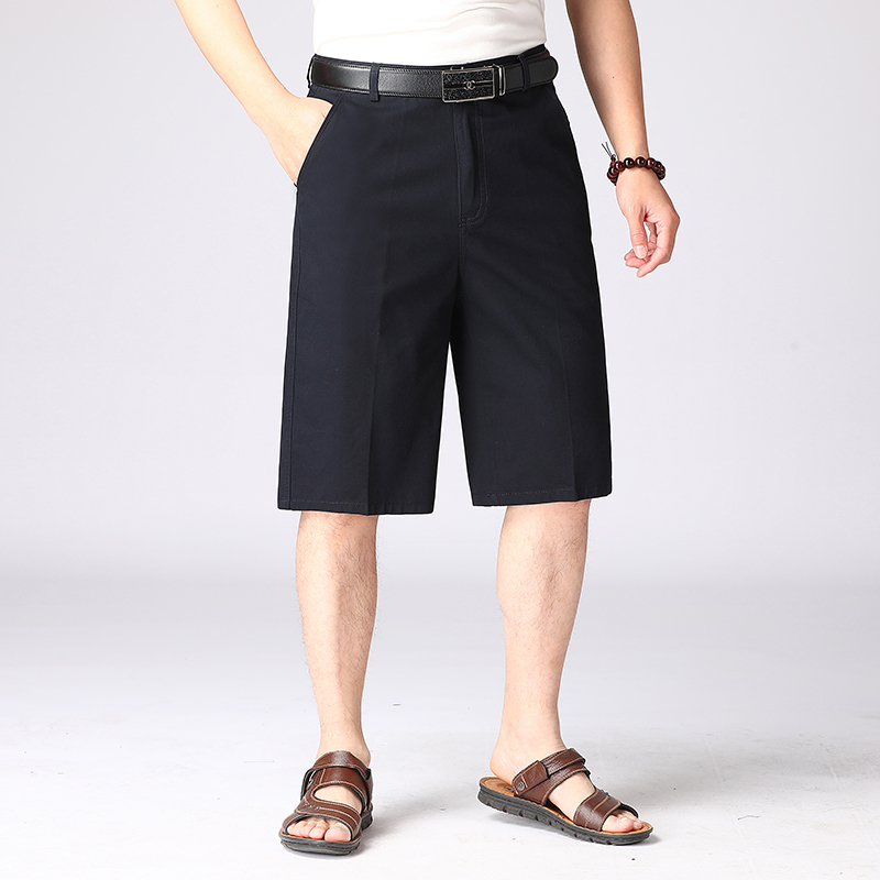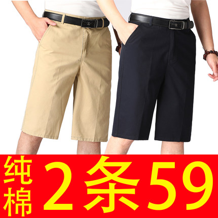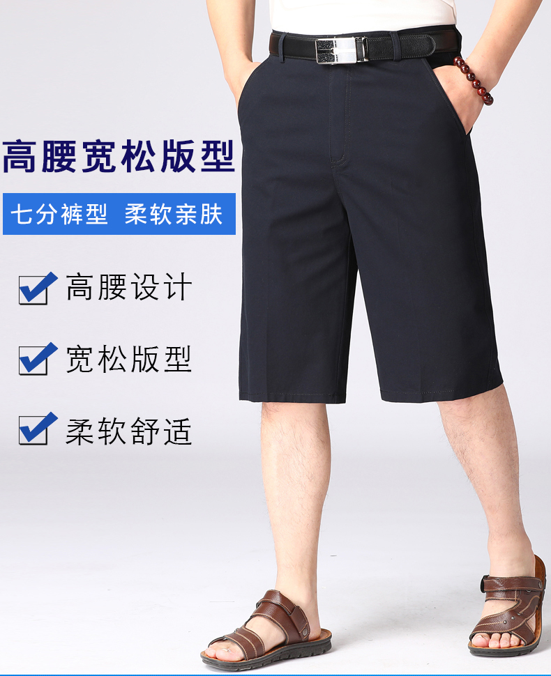 夏季薄款中年男士休闲短裤外穿直筒宽松中老年高腰爸爸七分裤纯棉