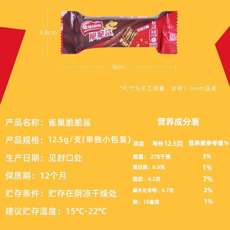 雀巢脆脆鲨威化夹心饼干单独小包散装巧克力网红休闲零食品夜宵