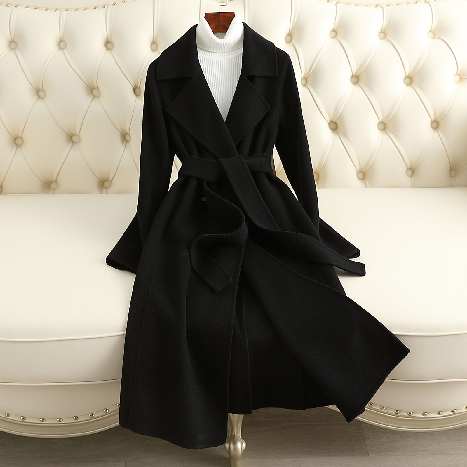 迪奥双面绒羊毛大衣女25秋冬新款气质高级感修身中长系带毛呢外套