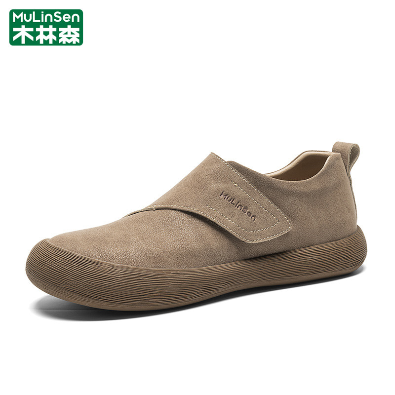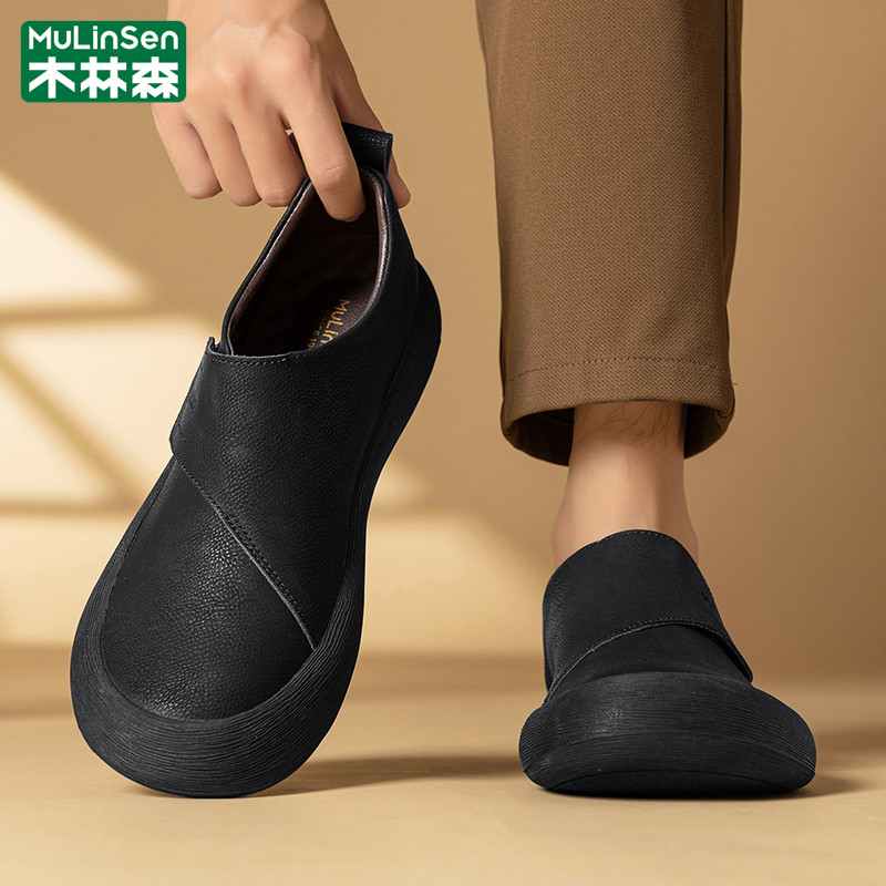 木林森皮鞋男冬季商务英伦休闲运动魔术贴复古中年爸爸乐福豆豆鞋