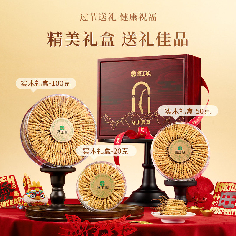 源江草头茬冬虫夏草大号虫草干草3根/g100g礼盒官方正品送礼佳品