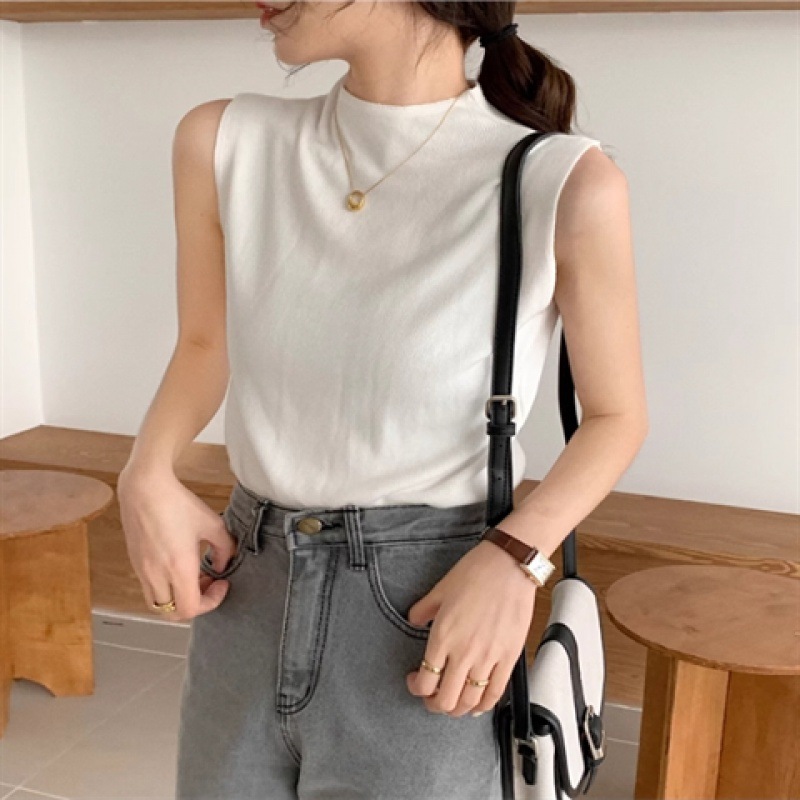 纯色针织吊带背心女西装职业内搭韩版夏季打底半高领无袖上衣冰丝