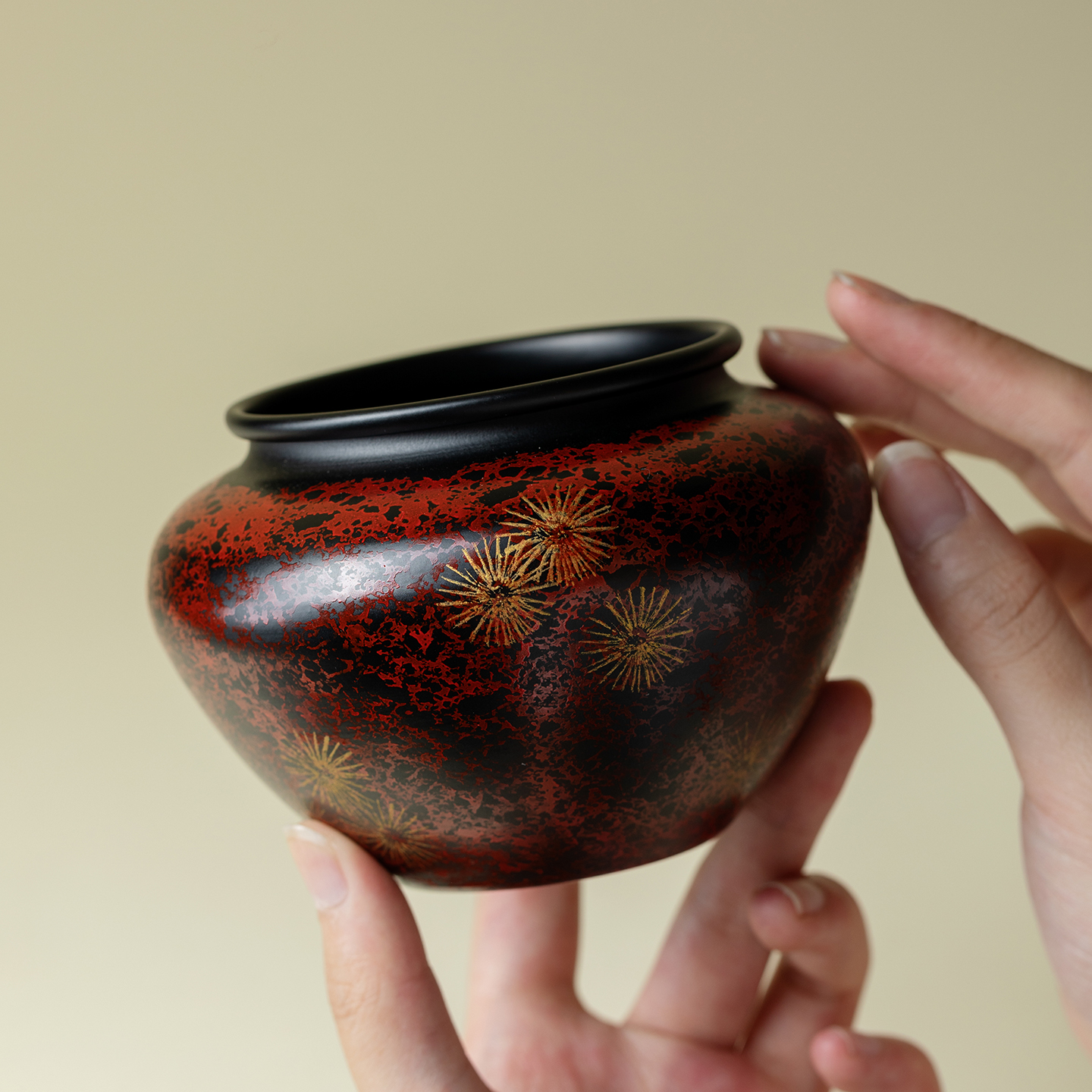 梵汝中式茶盂大漆老铁茶洗小号家用干泡茶渣缸废水缸建水复古水盂