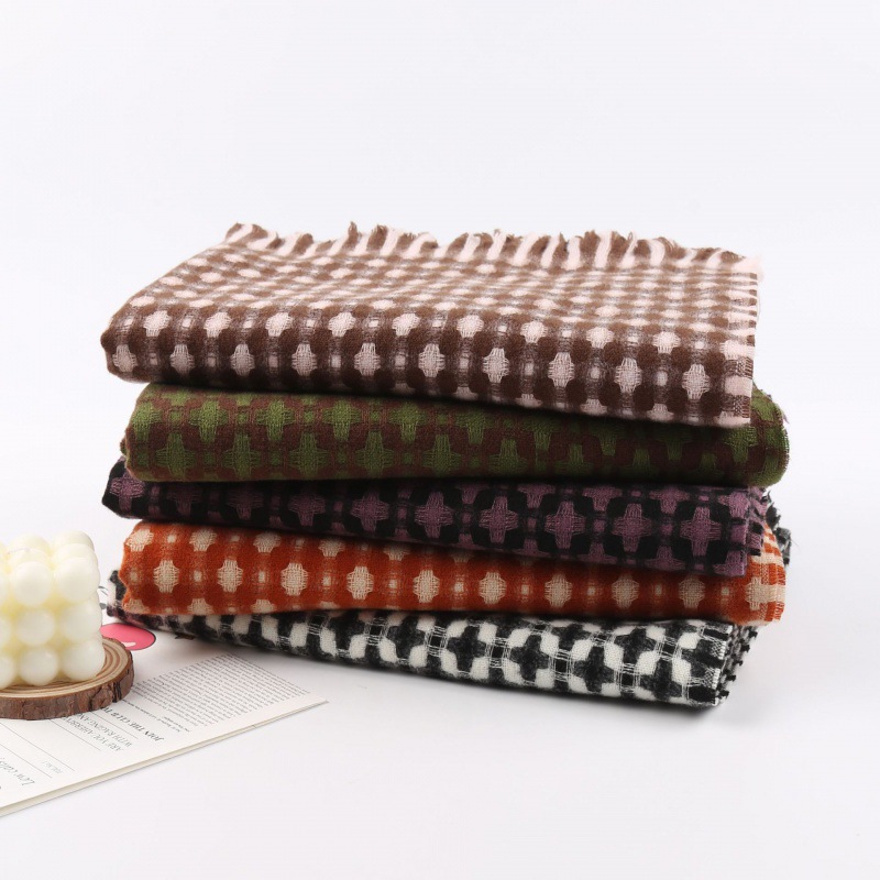 秋冬新款十字格子流苏围巾女仿羊绒外搭披肩百搭保暖围脖