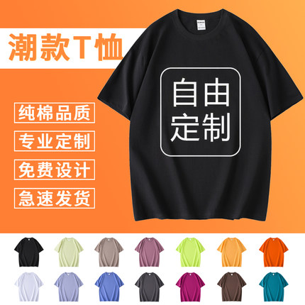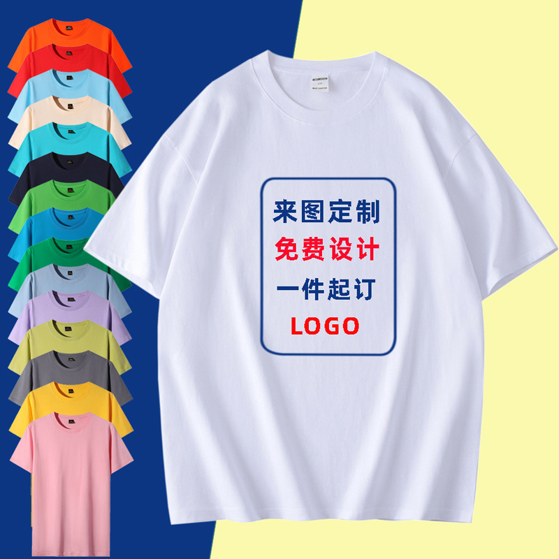 纯棉t恤定制logo工作服T恤订制班服大码短袖文化衫广告衫印图logo