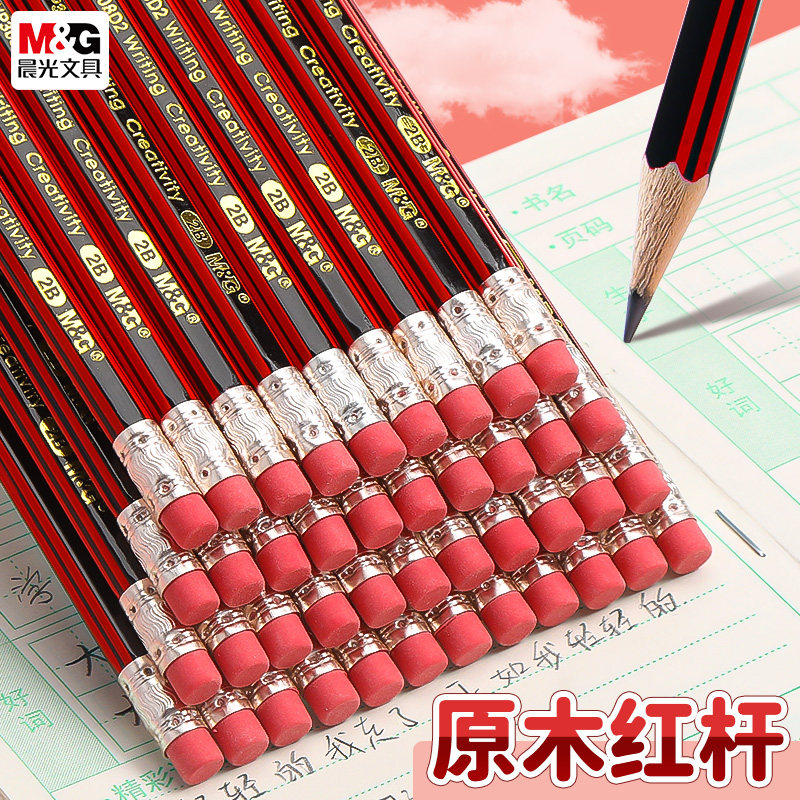 晨光2B铅笔批发小学生考试专用涂卡笔带橡皮擦答题卡儿童练字学习一年级三年级HB幼儿园2比素描绘画初学