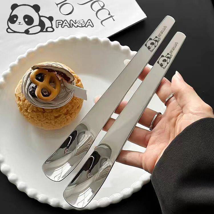 方头甜品勺子平头家用ins搅拌长柄挖勺蛋糕雪糕高颜值咖啡小勺