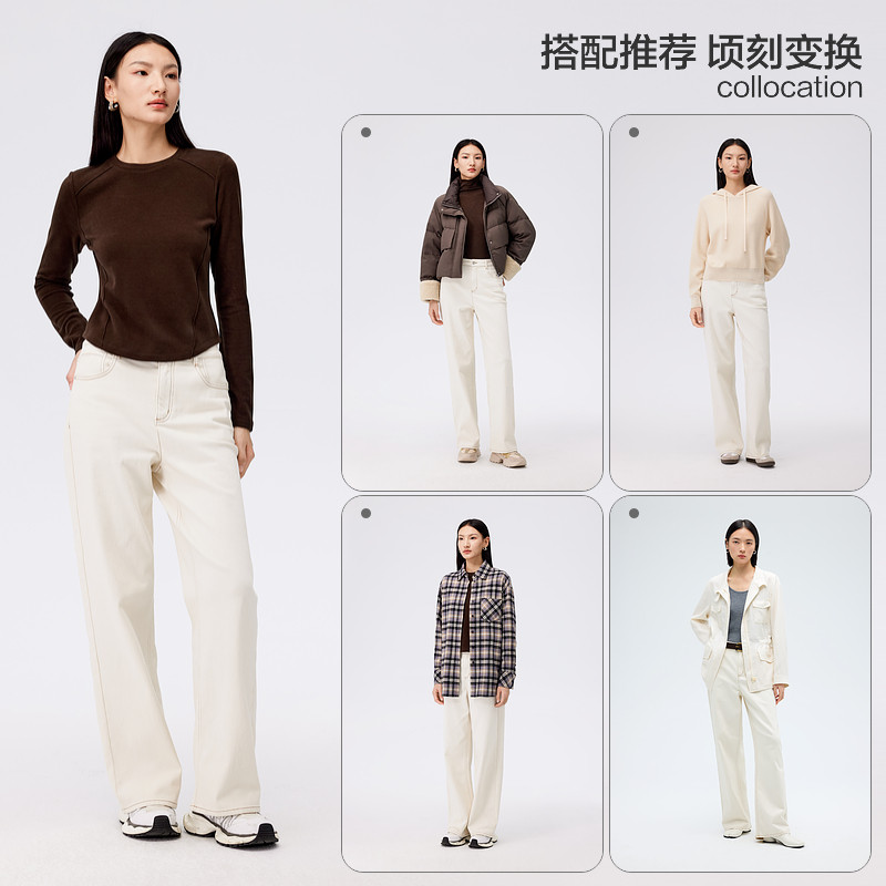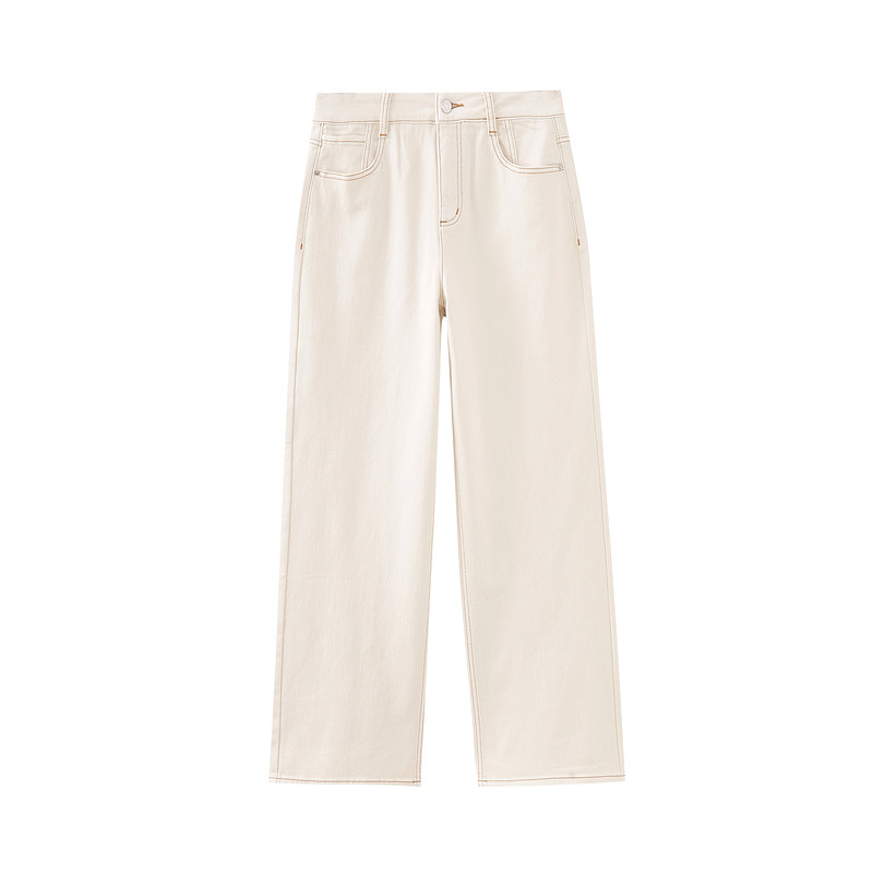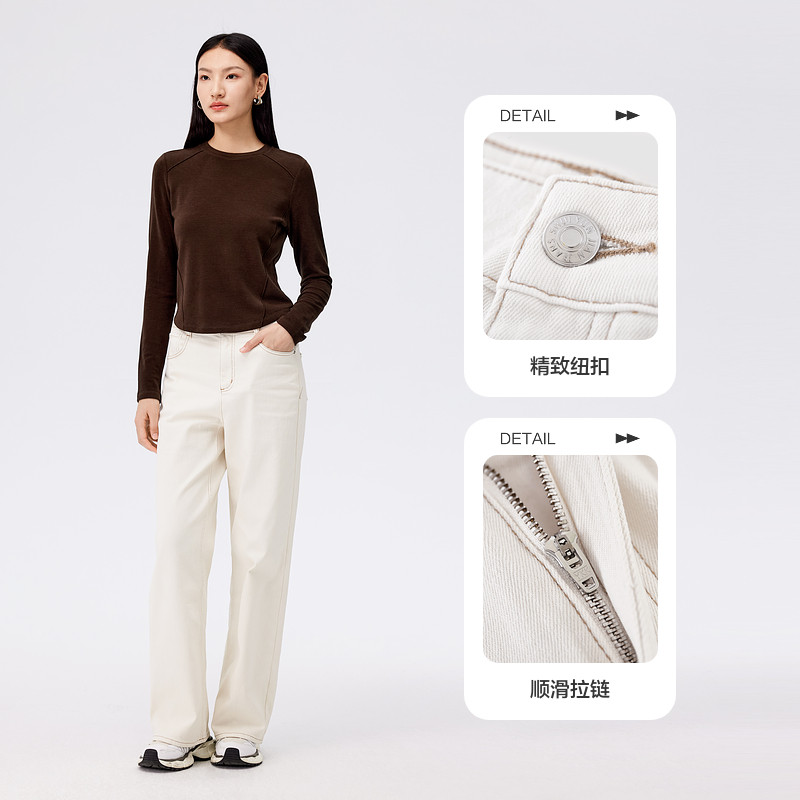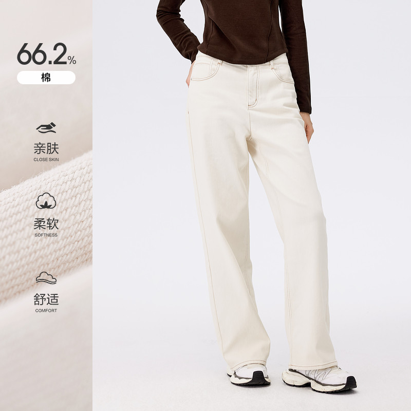 水云间白色直筒牛仔裤女松弛感阔腿长裤子宽松简约百搭2025秋冬款