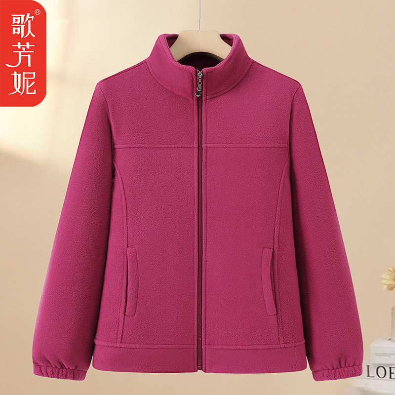 中老年女装立领抓绒衣妈妈秋冬女2025新款加绒加厚摇粒绒外套棉衣