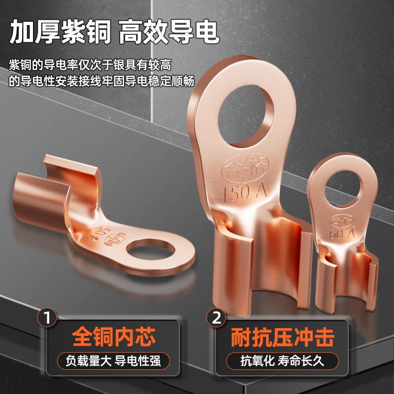 国标OT开口鼻铜鼻子接线端子紫铜线鼻子电线接头电瓶线耳铜接头