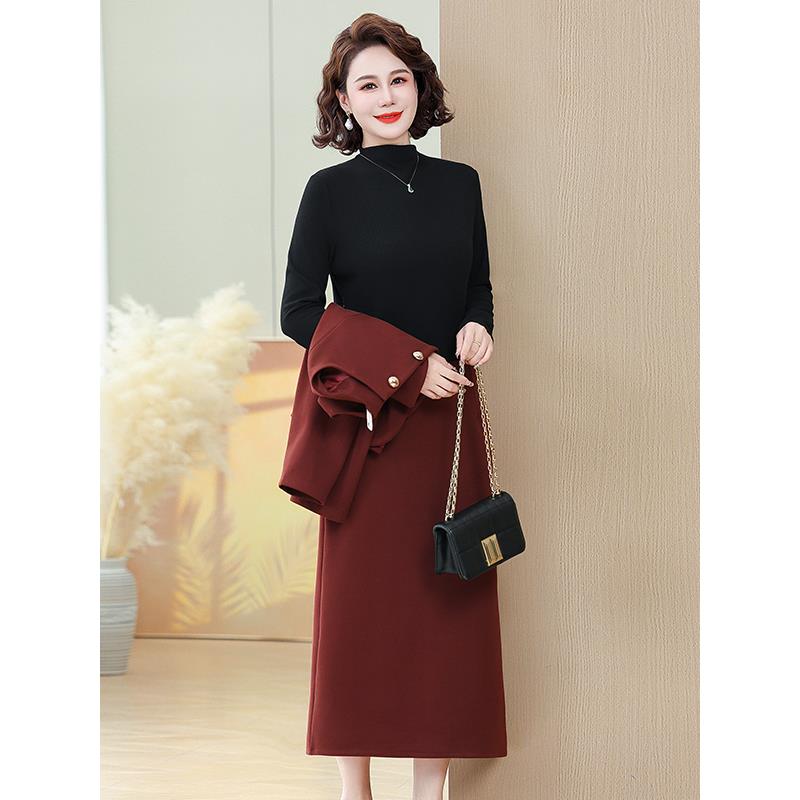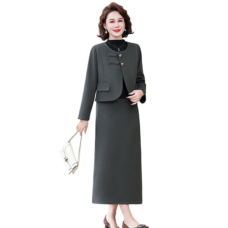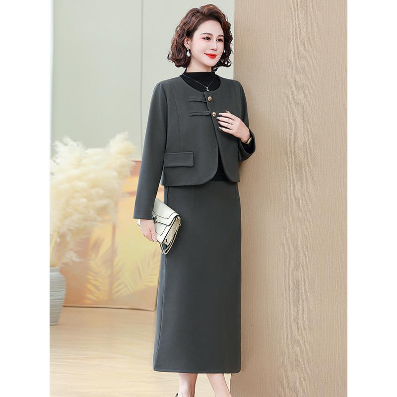 2025新款春秋装气质职业连衣裙两件套中国风套装中老年女装