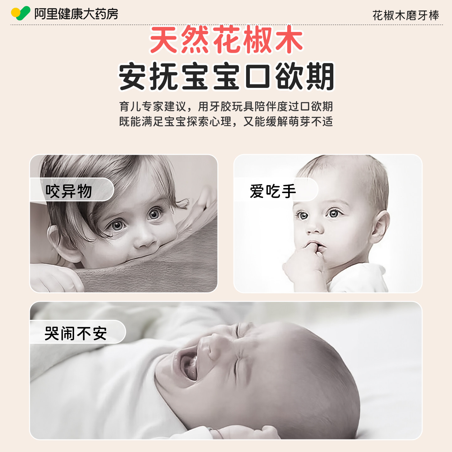 花椒木磨牙棒婴儿6个月以上防吃手小月龄牙胶食品级4一岁宝宝玩具