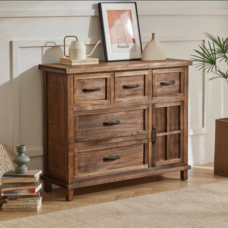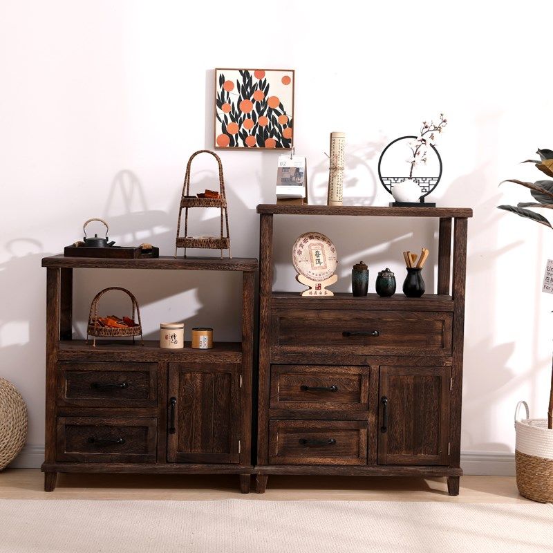 美式餐边柜实木斗柜做旧玄关收纳柜客厅储物柜子复古茶水柜免安装