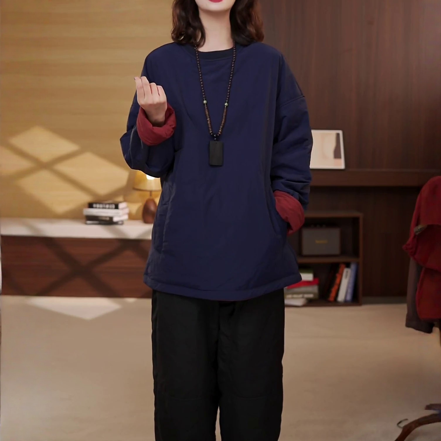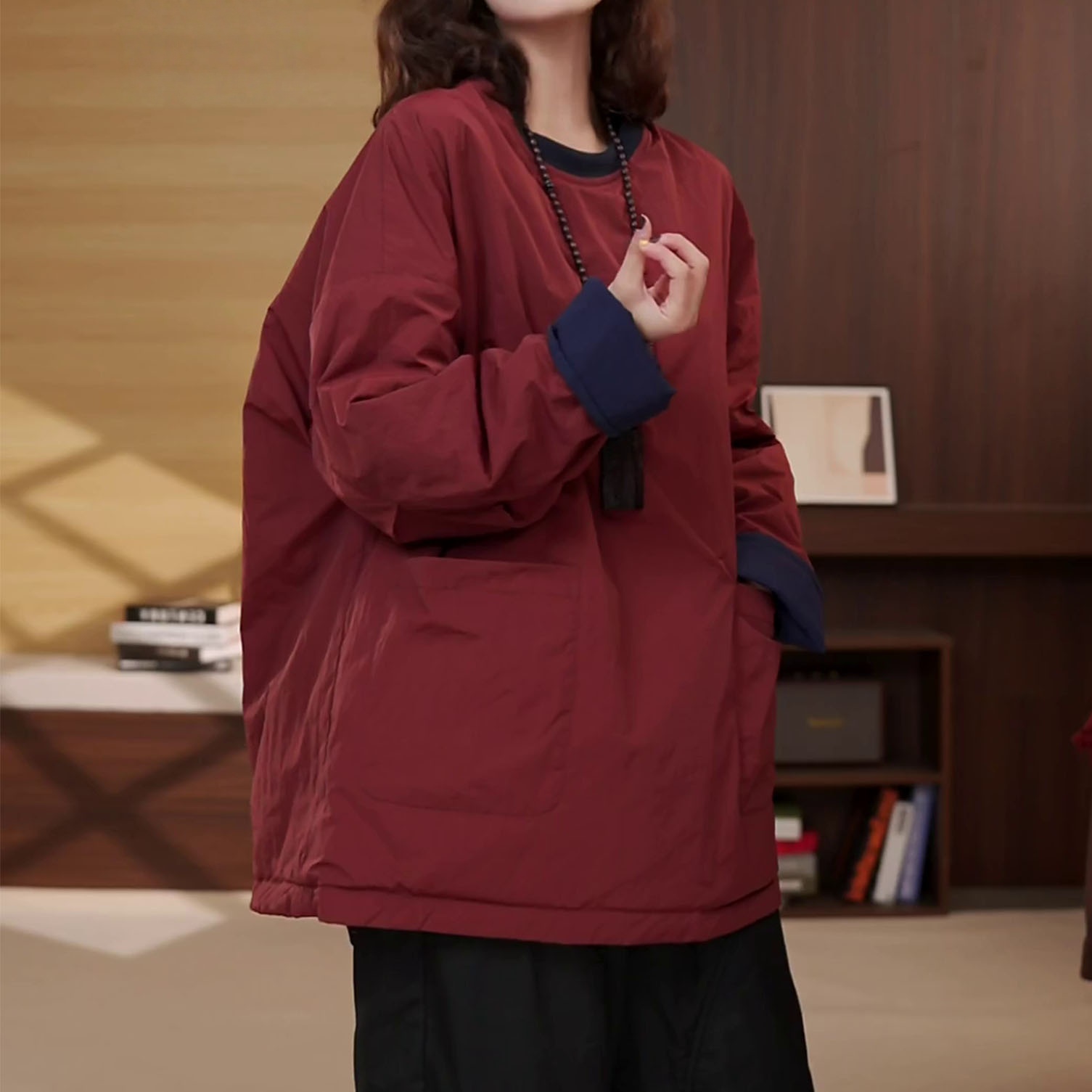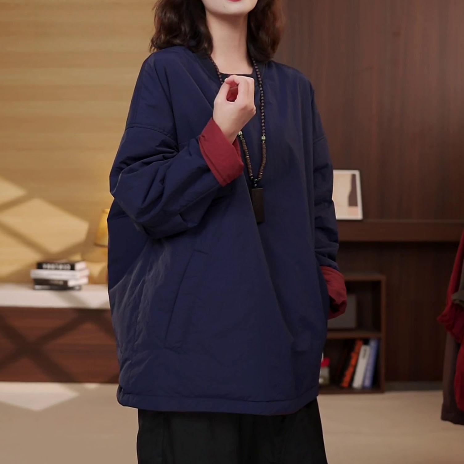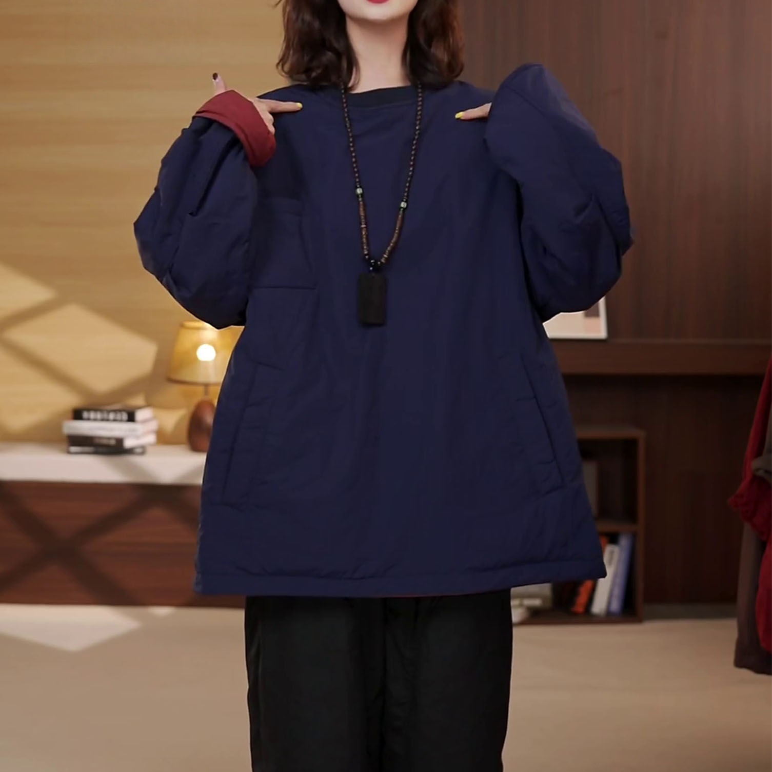 2025秋冬新款时尚休闲中长款撞色棉服宽松显瘦加厚保暖双面穿外套