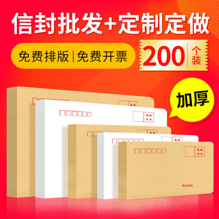 200个装信封大号小号信纸加厚牛皮纸信封白色黄色信封袋发票袋工资袋增值税发票票据袋专用印刷定做定制批发
