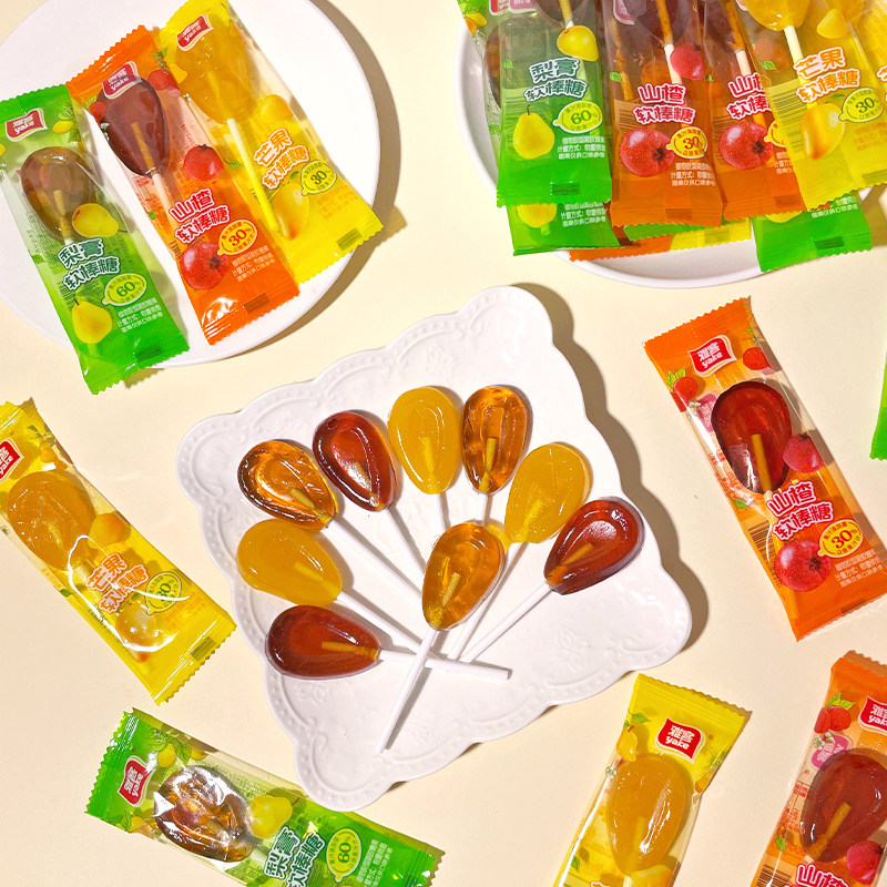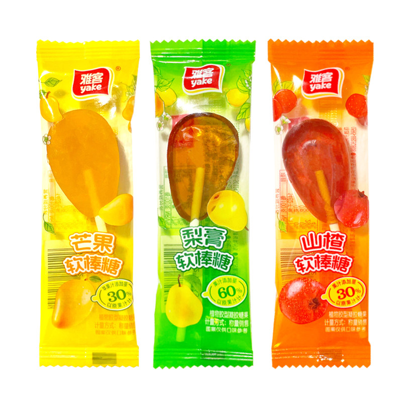 雅客官方正品梨膏棒棒糖芒果山楂味果汁软糖儿童糖果解馋休闲零食