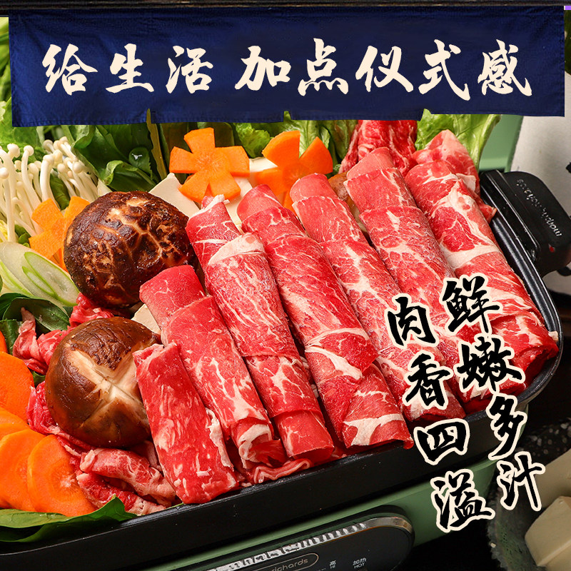 【澳谷牧场】谷饲原切雪花牛肉卷新鲜安格斯肥牛卷寿喜烧火锅食材