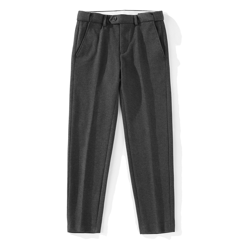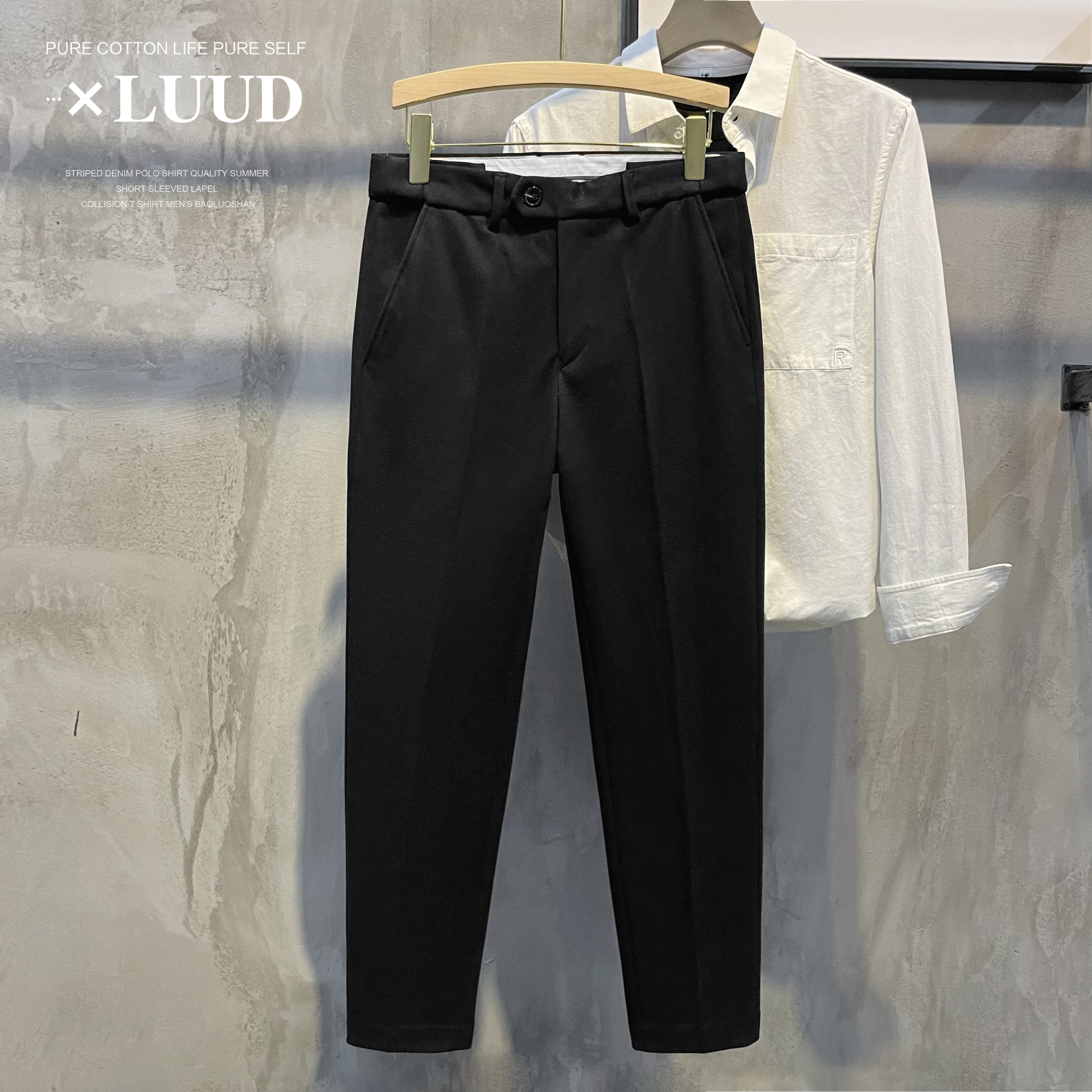 LUUD 亲肤毛呢料休闲裤男士修身松紧腰长裤英伦百搭秋冬磨毛西裤