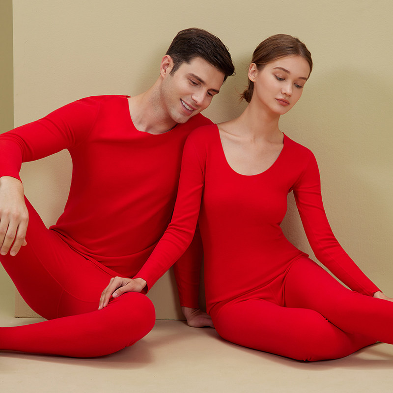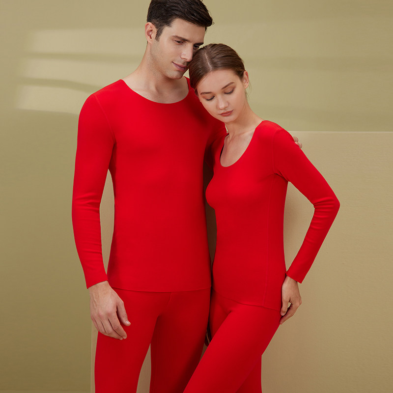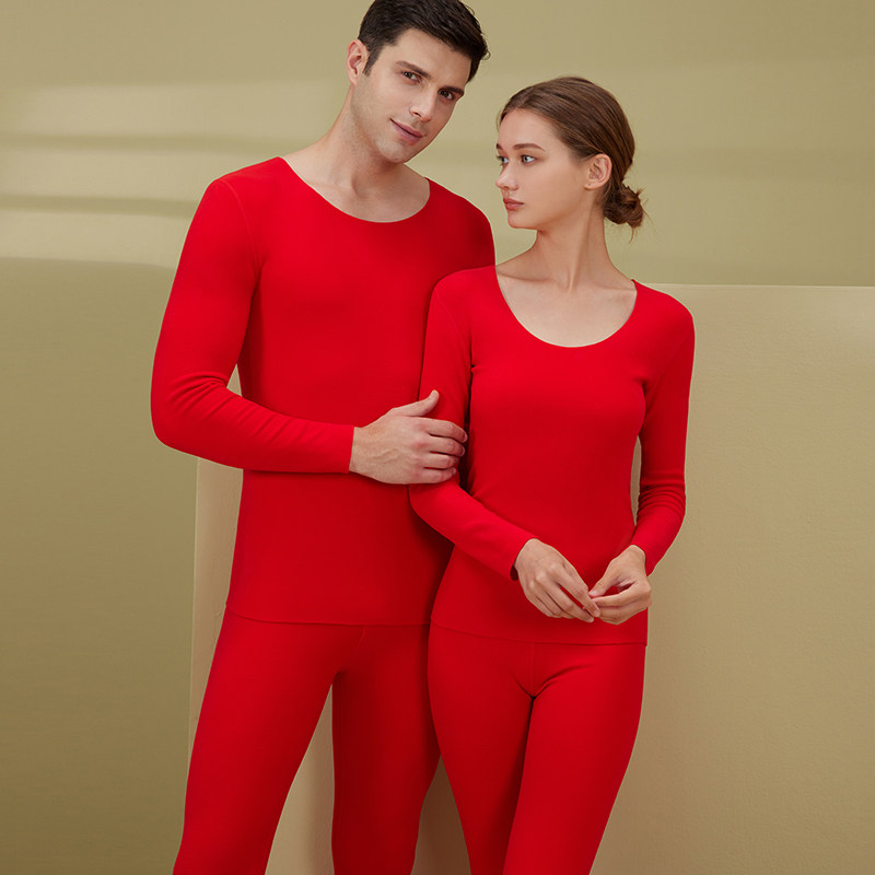 本命年保暖内衣套装女结婚加厚加绒自发热大红色男无痕秋衣秋裤冬