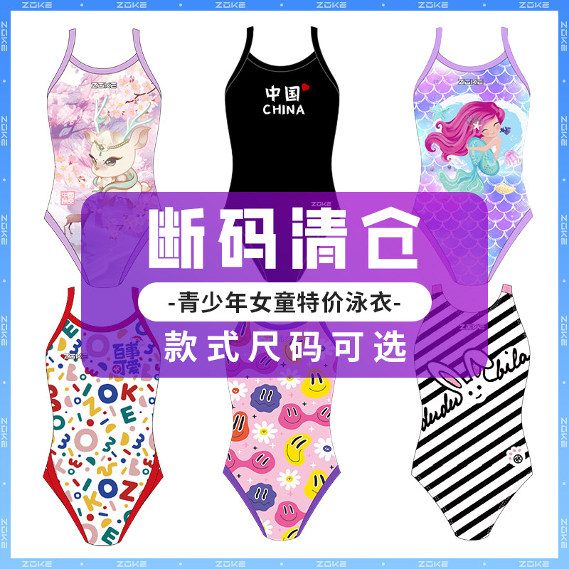 【断码清仓】zoke洲克儿童泳衣女孩专业中大女童竞速训练比赛泳衣
