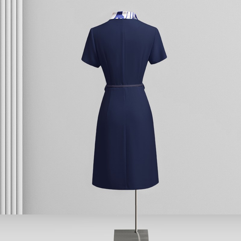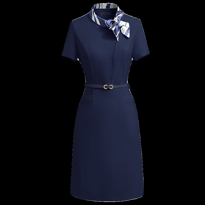 丝巾拼接职业连衣裙女夏气质收腰显瘦柜姐工作服酒店前台接待工装