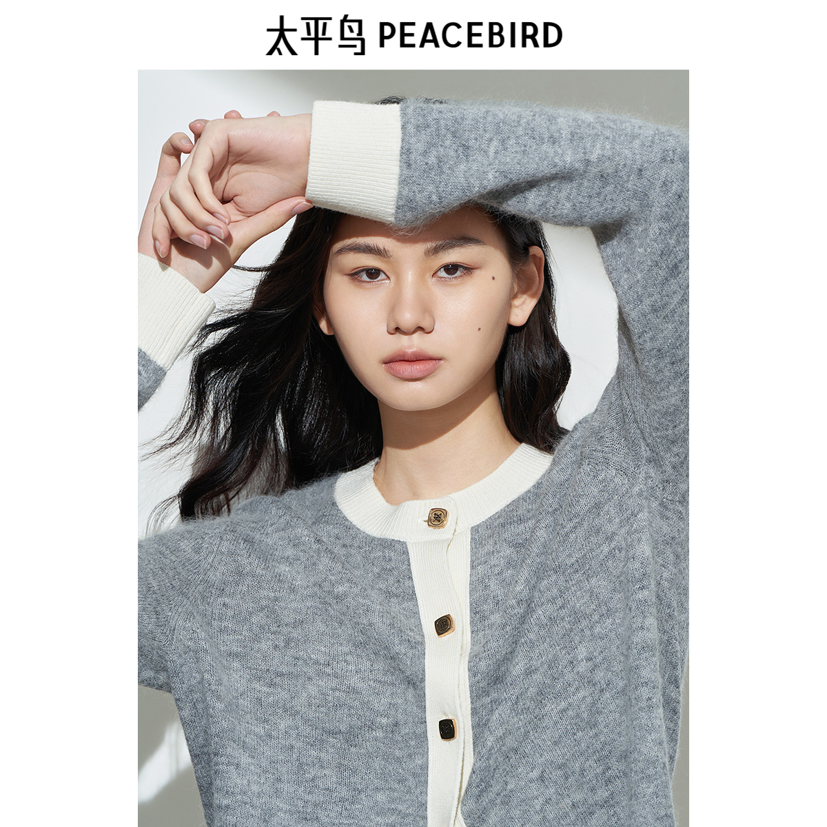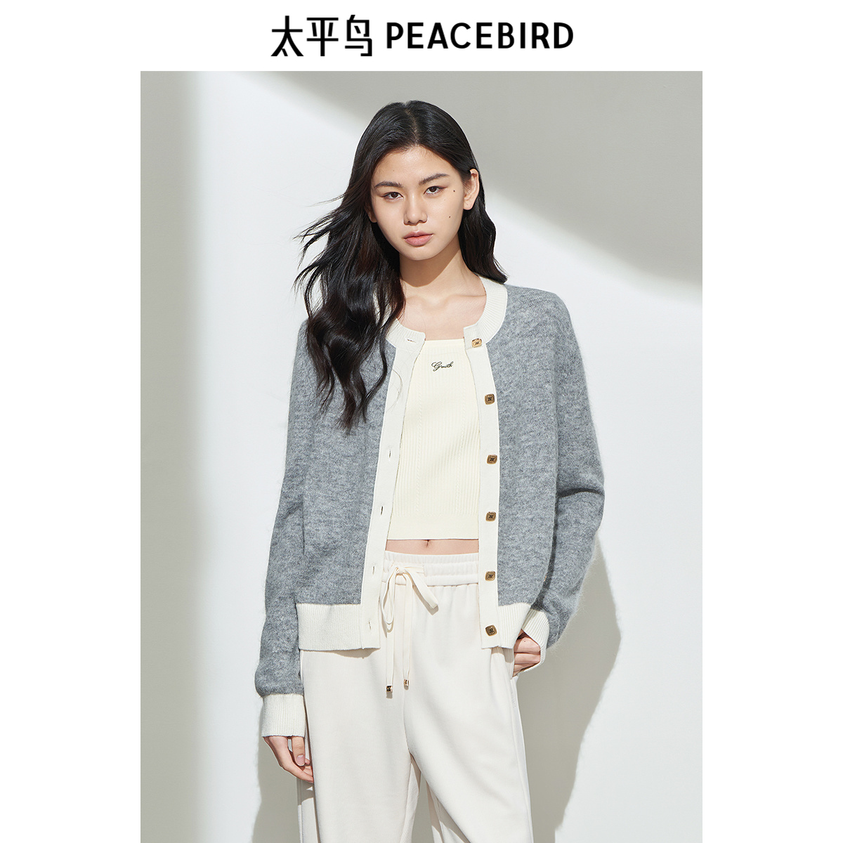 PEACEBIRD/太平鸟锦纶扣子开衫太