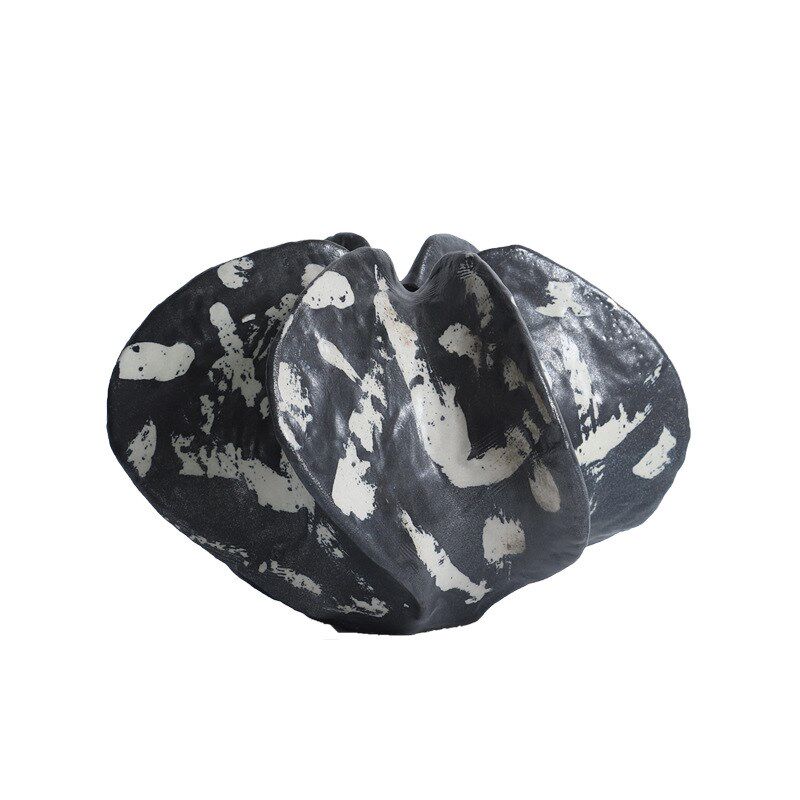 简约现代杨桃花器黑色手绘几何花瓣造型餐厅桌样板间茶几书柜摆件