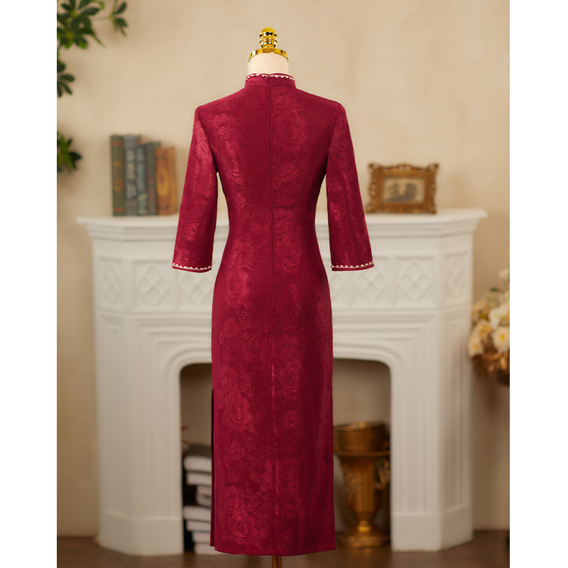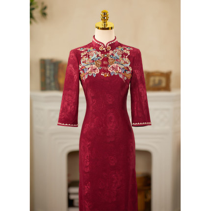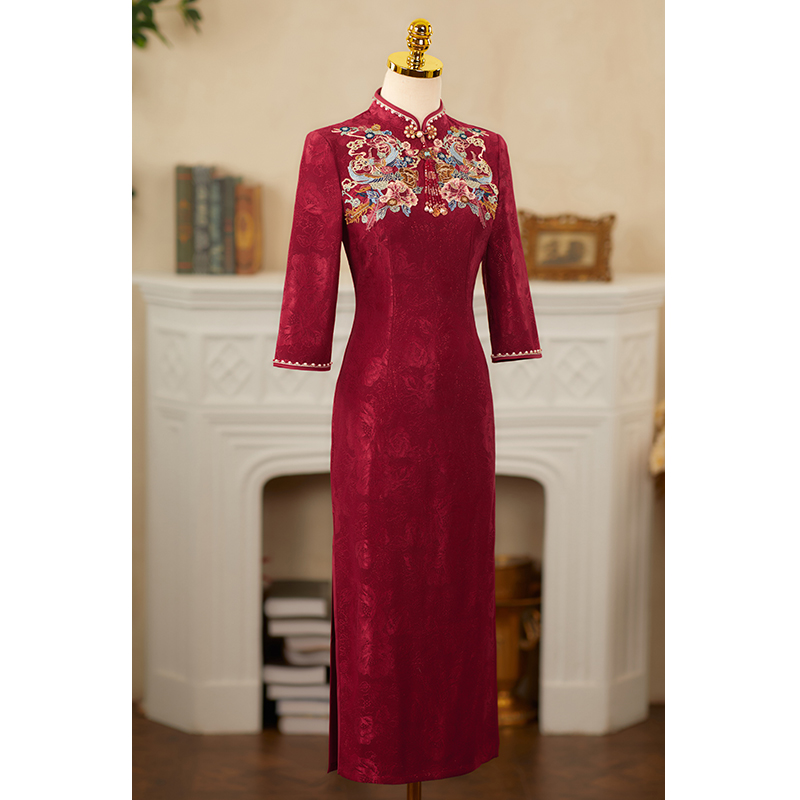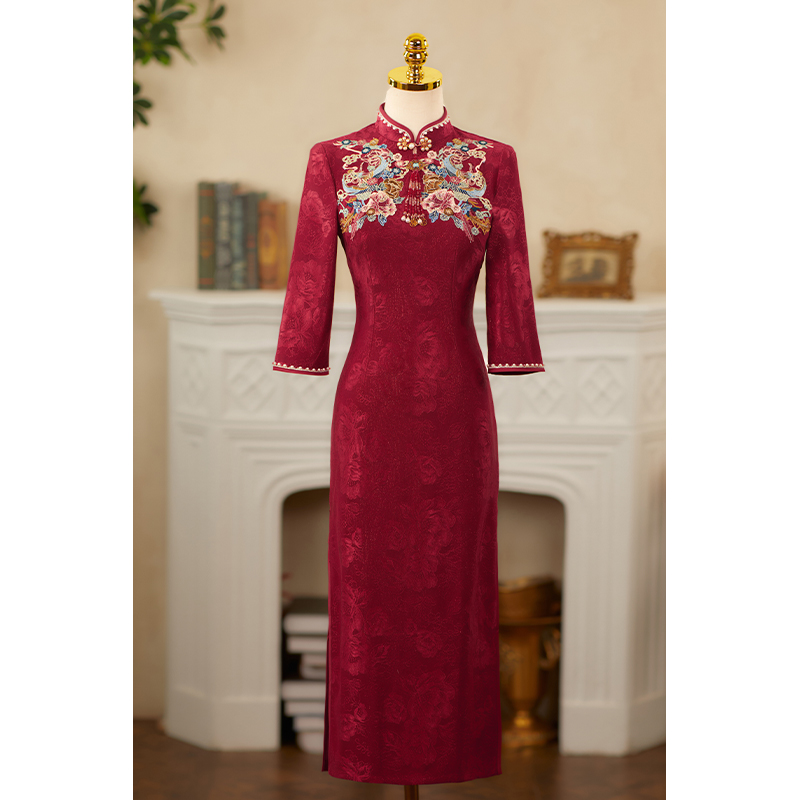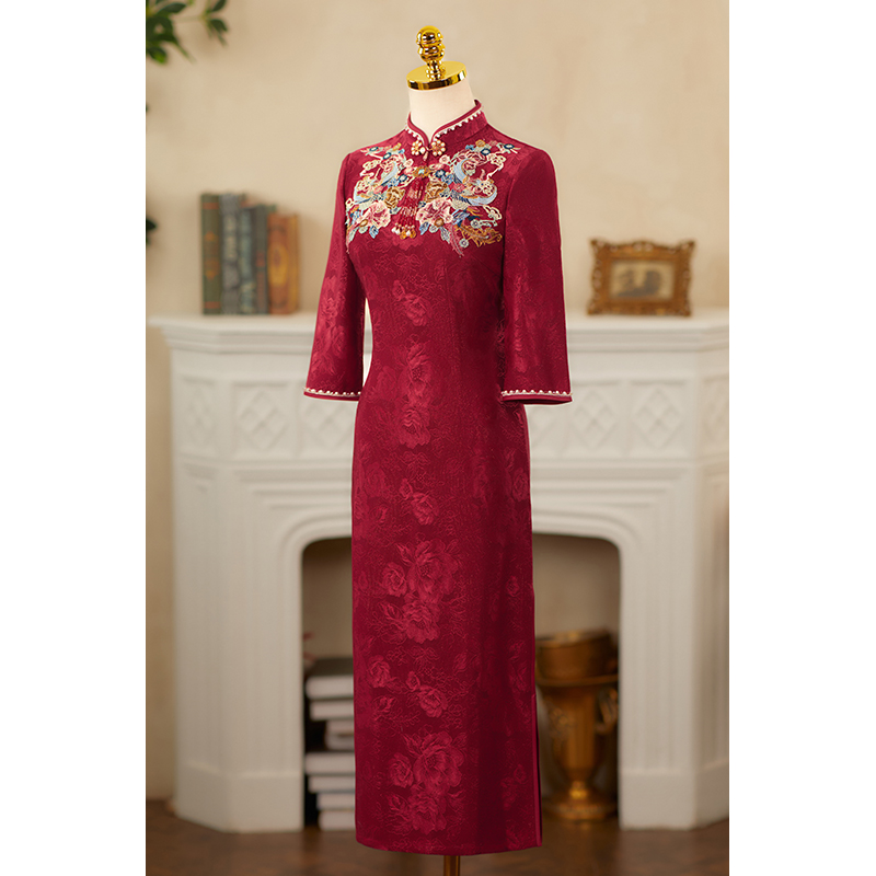 红色旗袍敬酒服新娘2025新款高级感新中式订婚礼服裙长袖春秋款