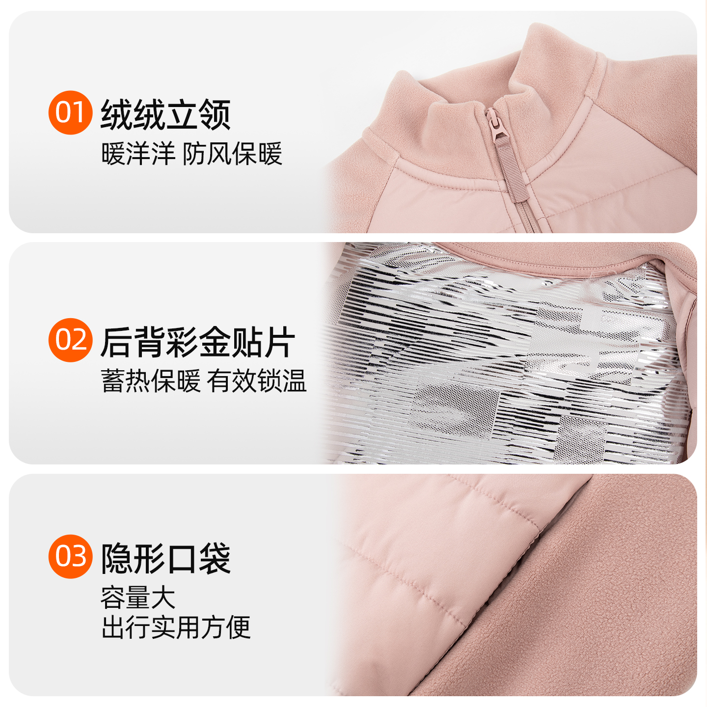 拼接立领拉链保暖上衣男女冬云感气绒服加厚防寒羊毛外套时尚卫衣