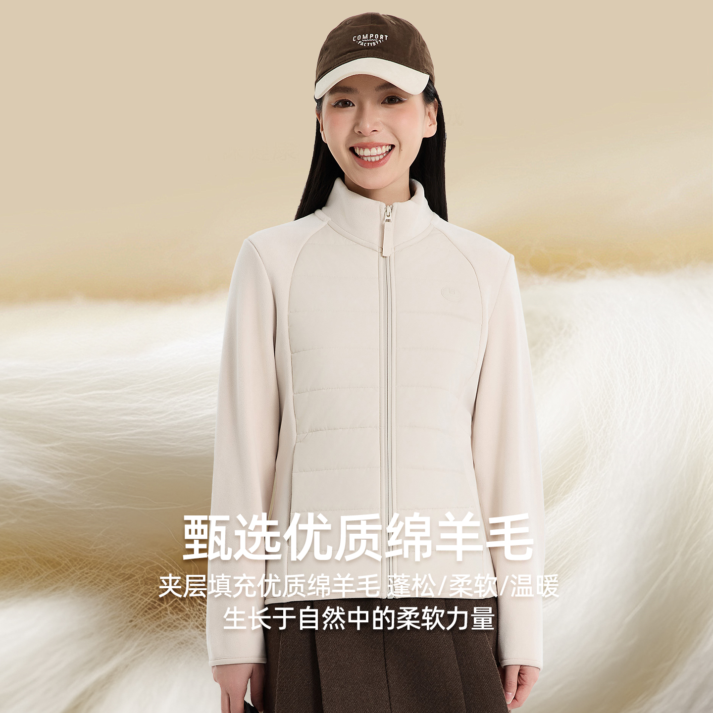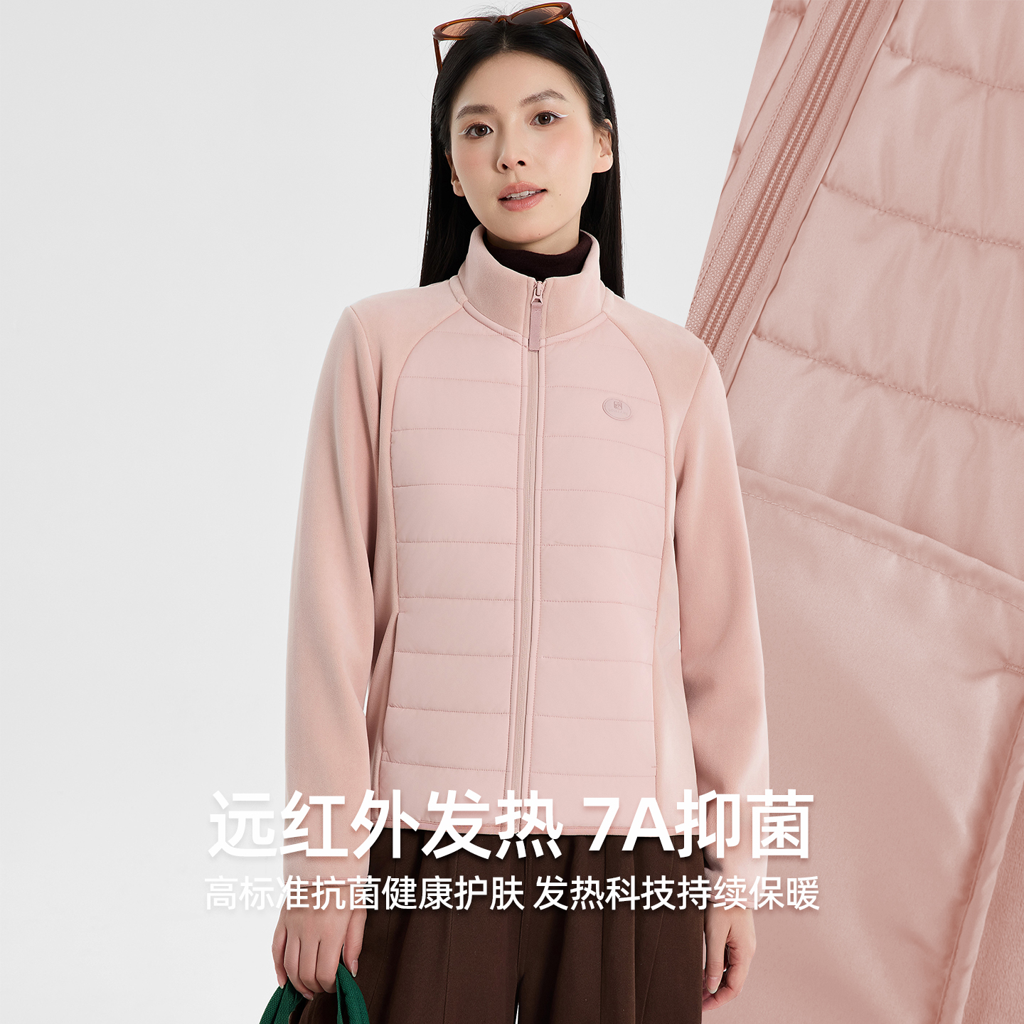 拼接立领拉链保暖上衣羊毛外套
